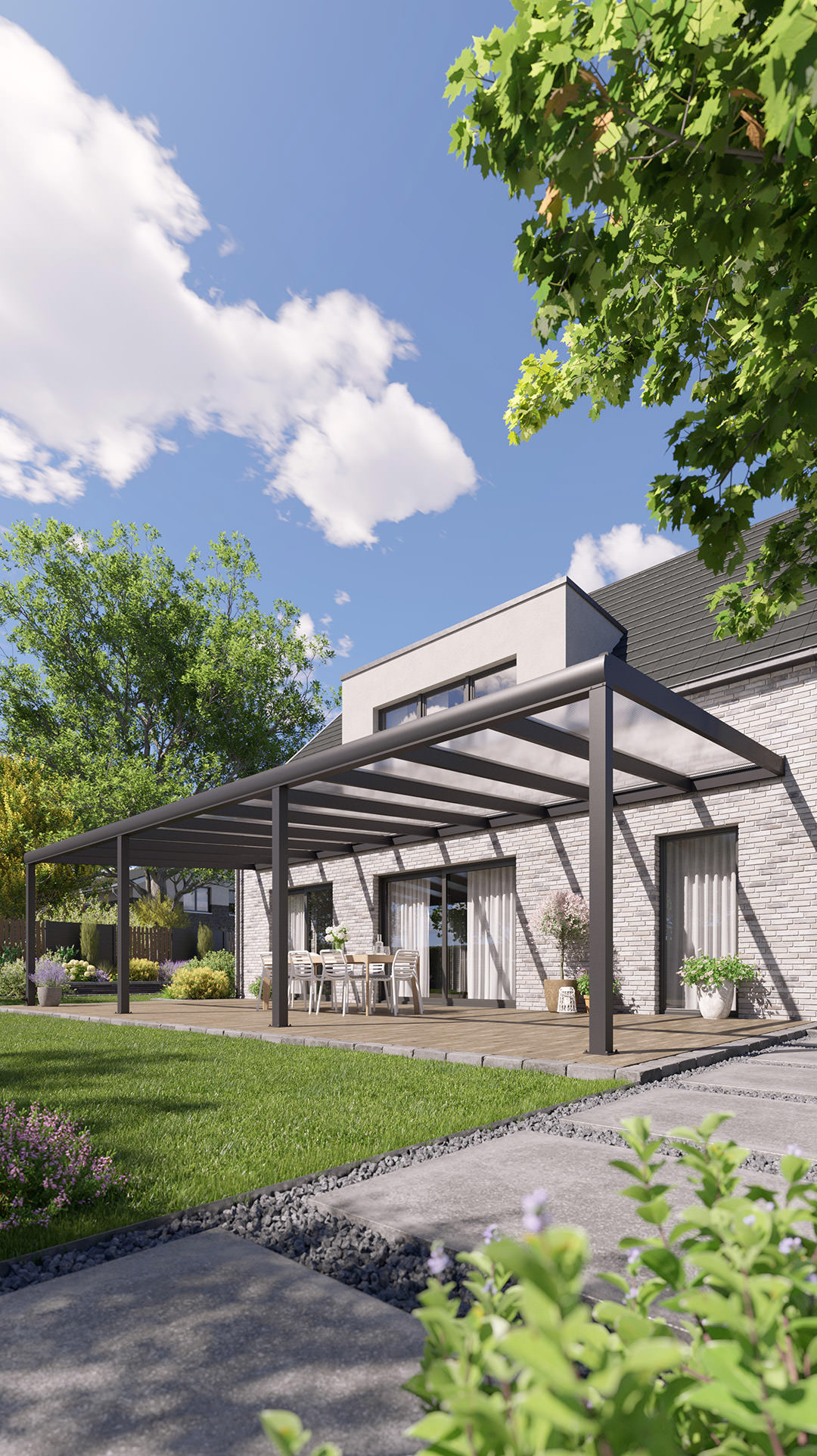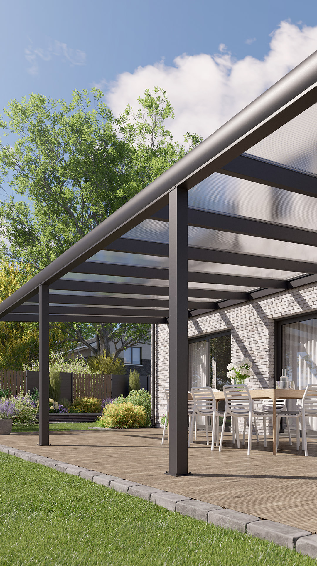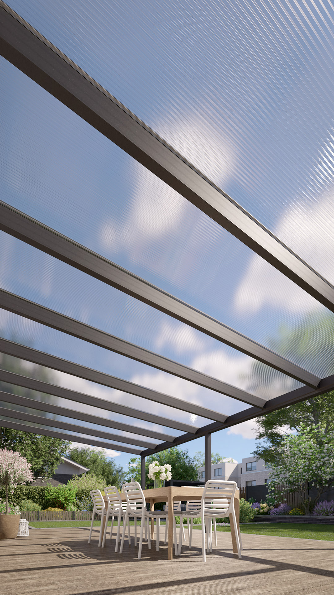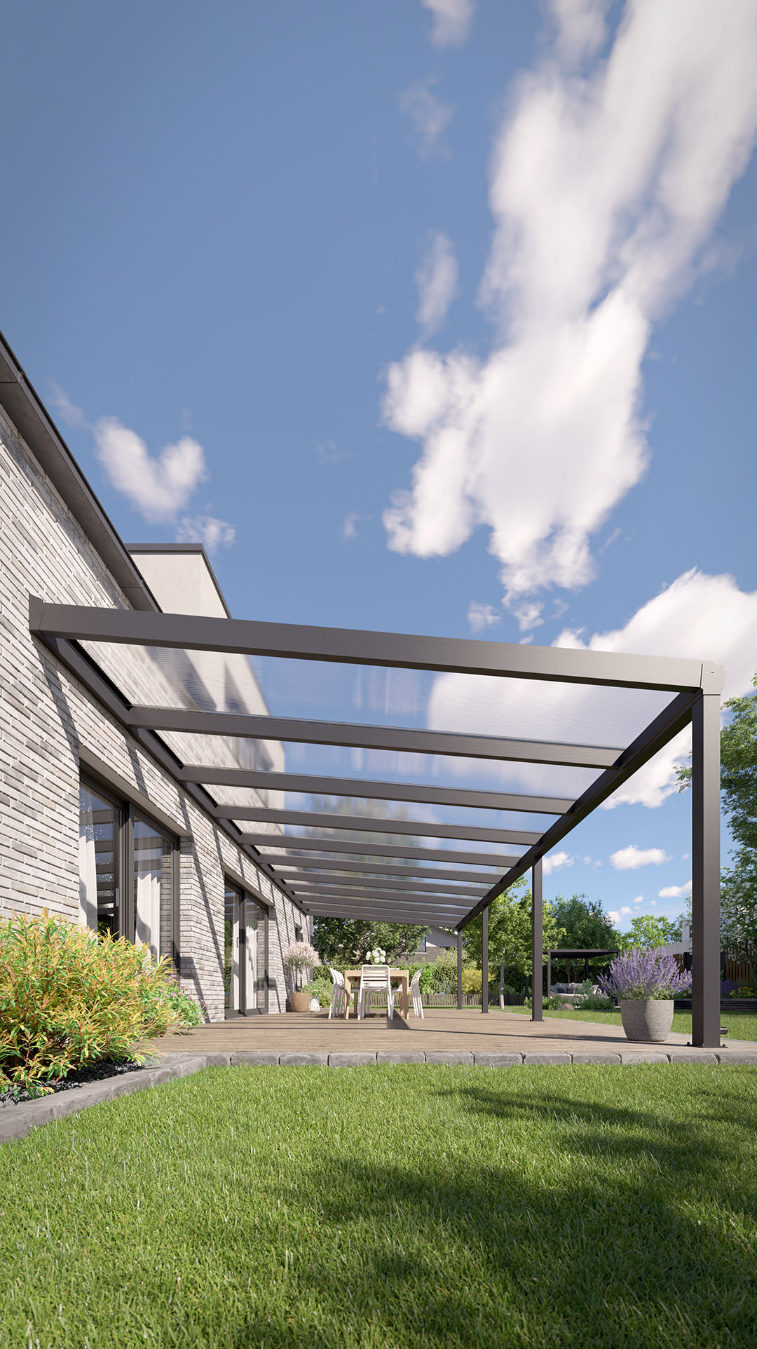 Die Profile werden aus hochwertigem Aluminium stranggepresst wodurch eine vollkommen ebene und gleichmäßige Oberfläche erreicht wird. Entgegen zahlreicher Anbieter von Billig-Überdachungen bestehen unsere REXOpremium®-Profile aus bis zu 4mm starkem Material. So sind alle tragenden Elemente verzugsfrei und alles bleibt, auch bei höheren Belastungen, dauerhaft so wie am ersten Tag.