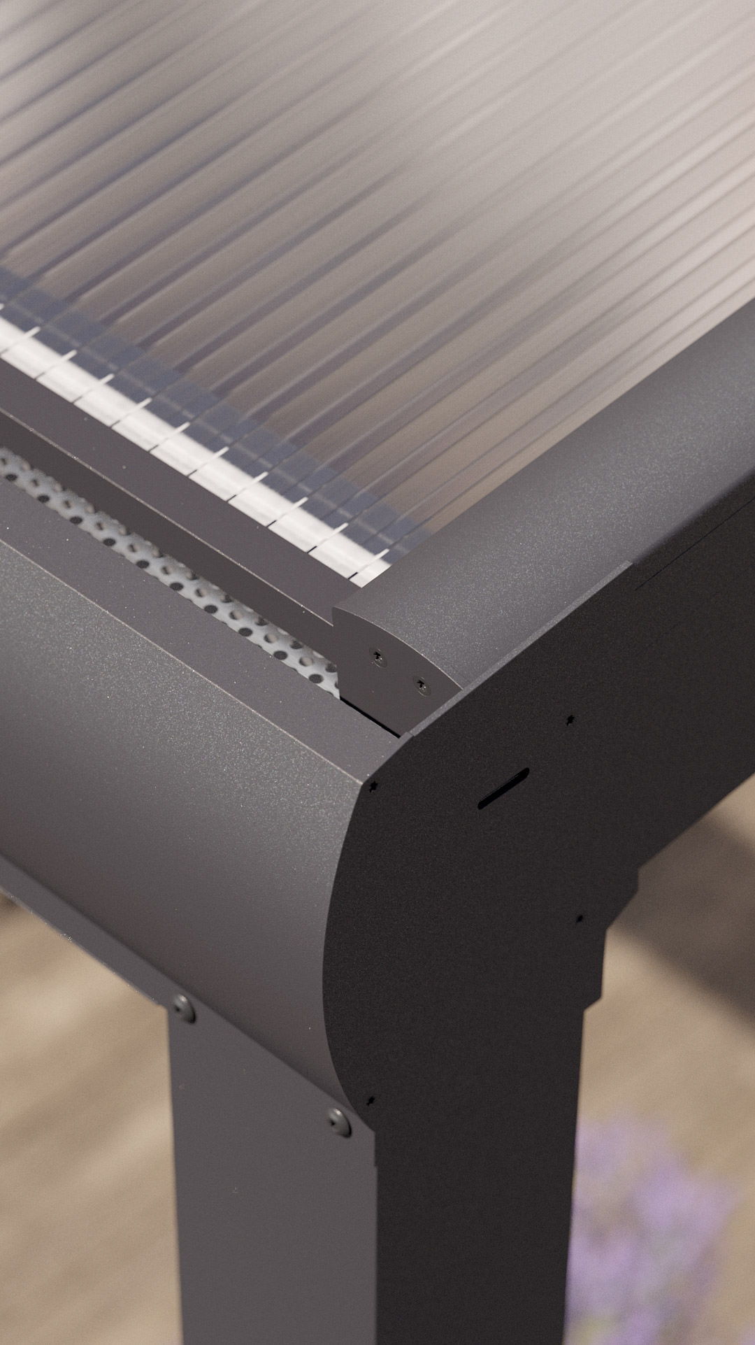 Die Profile in der Farbe anthrazit haben als besonderes Highlight einen speziellen Strukturlack, welcher für eine interessante Oberfläche sorgt.
