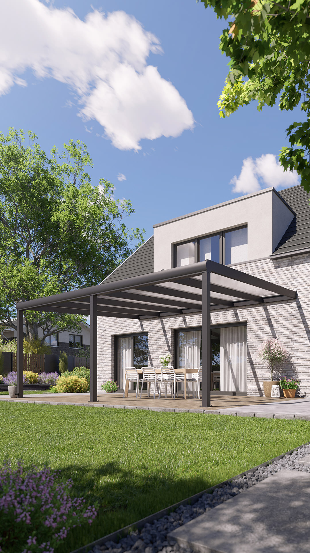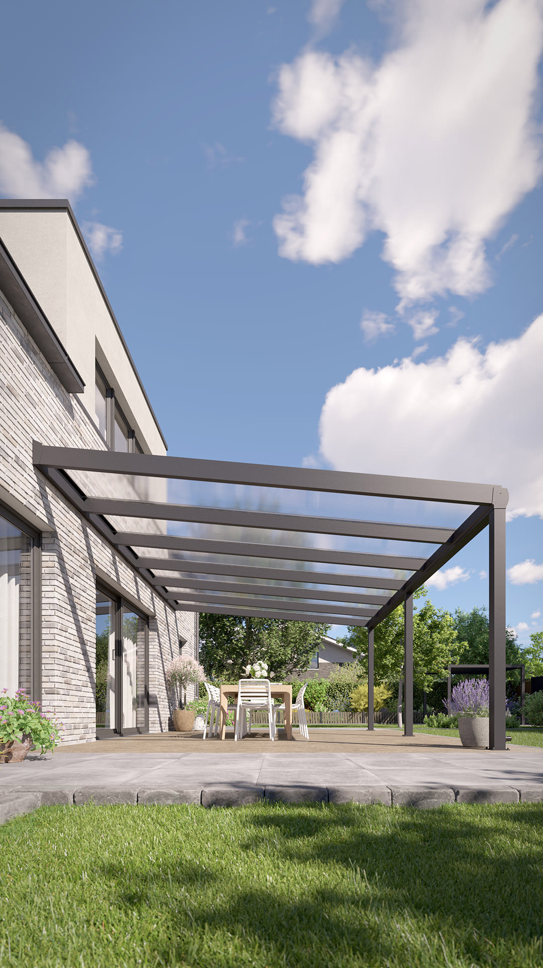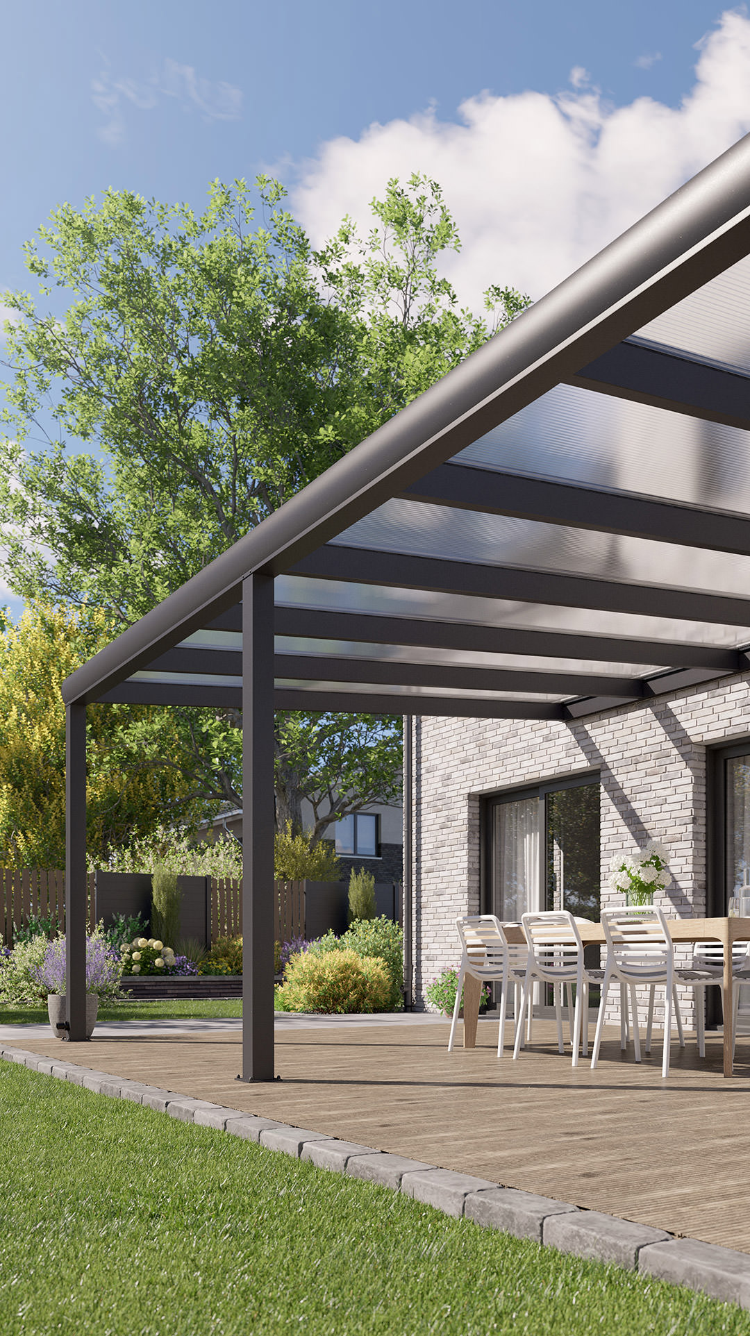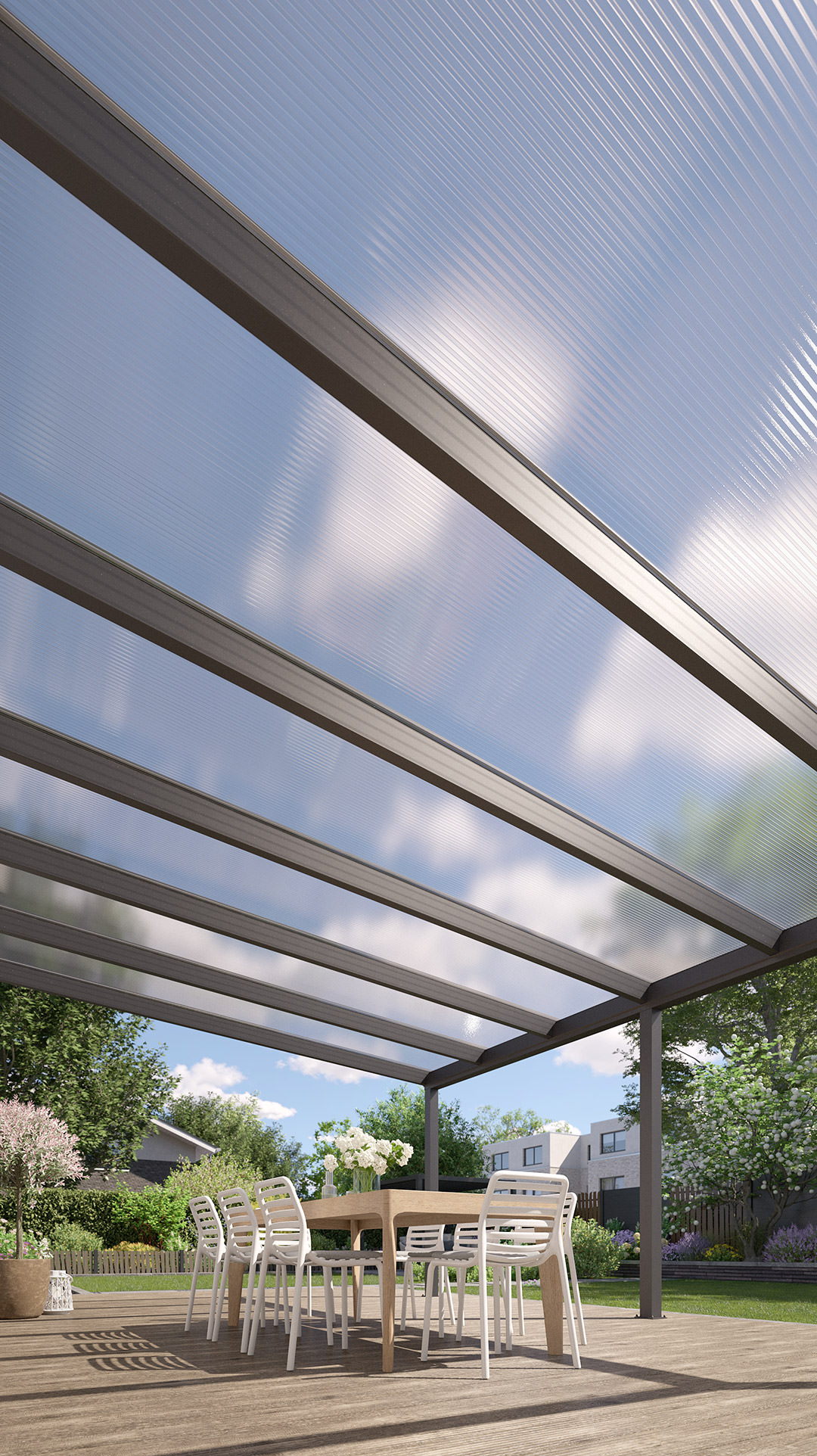 Die Profile werden aus hochwertigem Aluminium stranggepresst wodurch eine vollkommen ebene und gleichmäßige Oberfläche erreicht wird. Entgegen zahlreicher Anbieter von Billig-Überdachungen bestehen unsere REXOpremium®-Profile aus bis zu 4mm starkem Material. So sind alle tragenden Elemente verzugsfrei und alles bleibt, auch bei höheren Belastungen, dauerhaft so wie am ersten Tag.