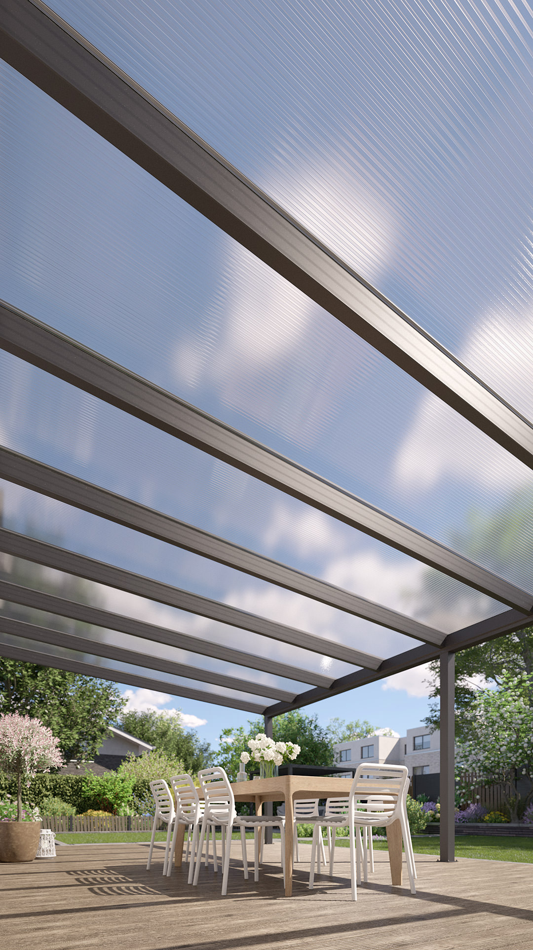 Die Profile werden aus hochwertigem Aluminium stranggepresst wodurch eine vollkommen ebene und gleichmäßige Oberfläche erreicht wird. Entgegen zahlreicher Anbieter von Billig-Überdachungen bestehen unsere REXOpremium®-Profile aus bis zu 4mm starkem Material. So sind alle tragenden Elemente verzugsfrei und alles bleibt, auch bei höheren Belastungen, dauerhaft so wie am ersten Tag.