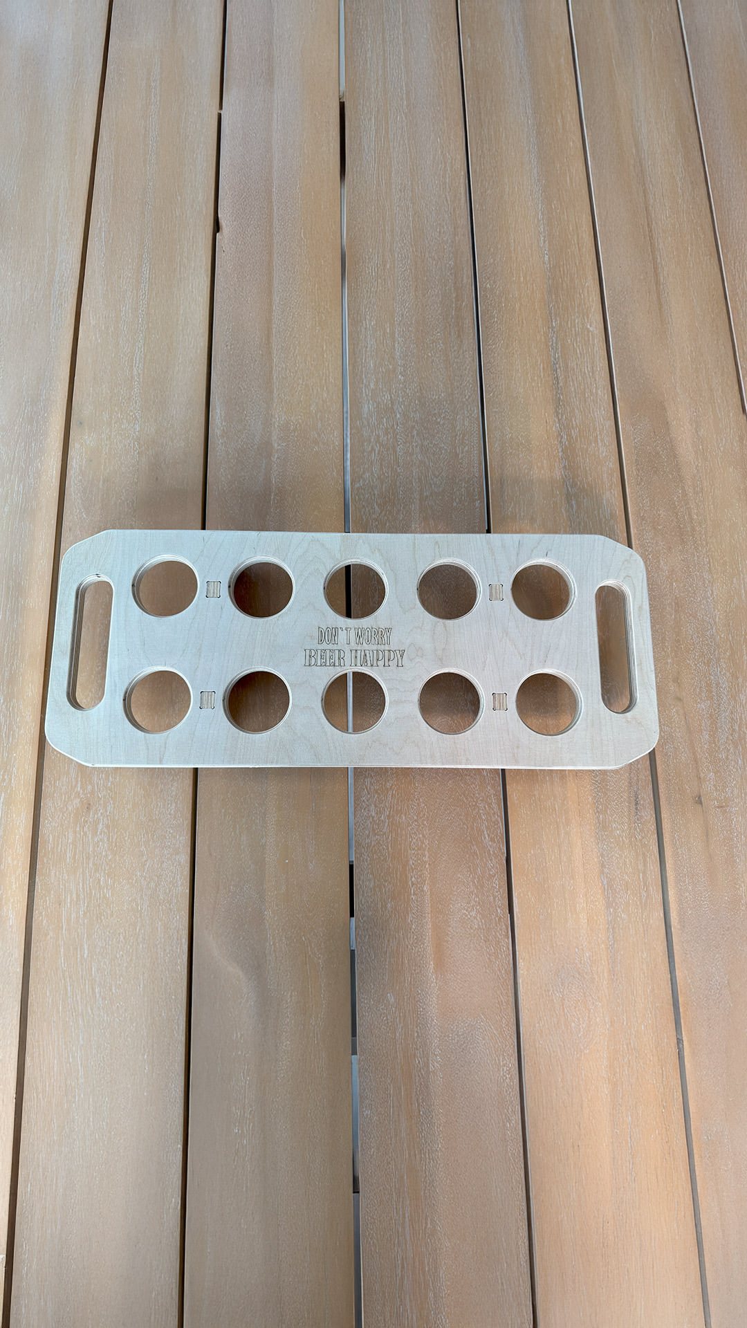 - mit Gravur: „Don’t worry, beer happy“