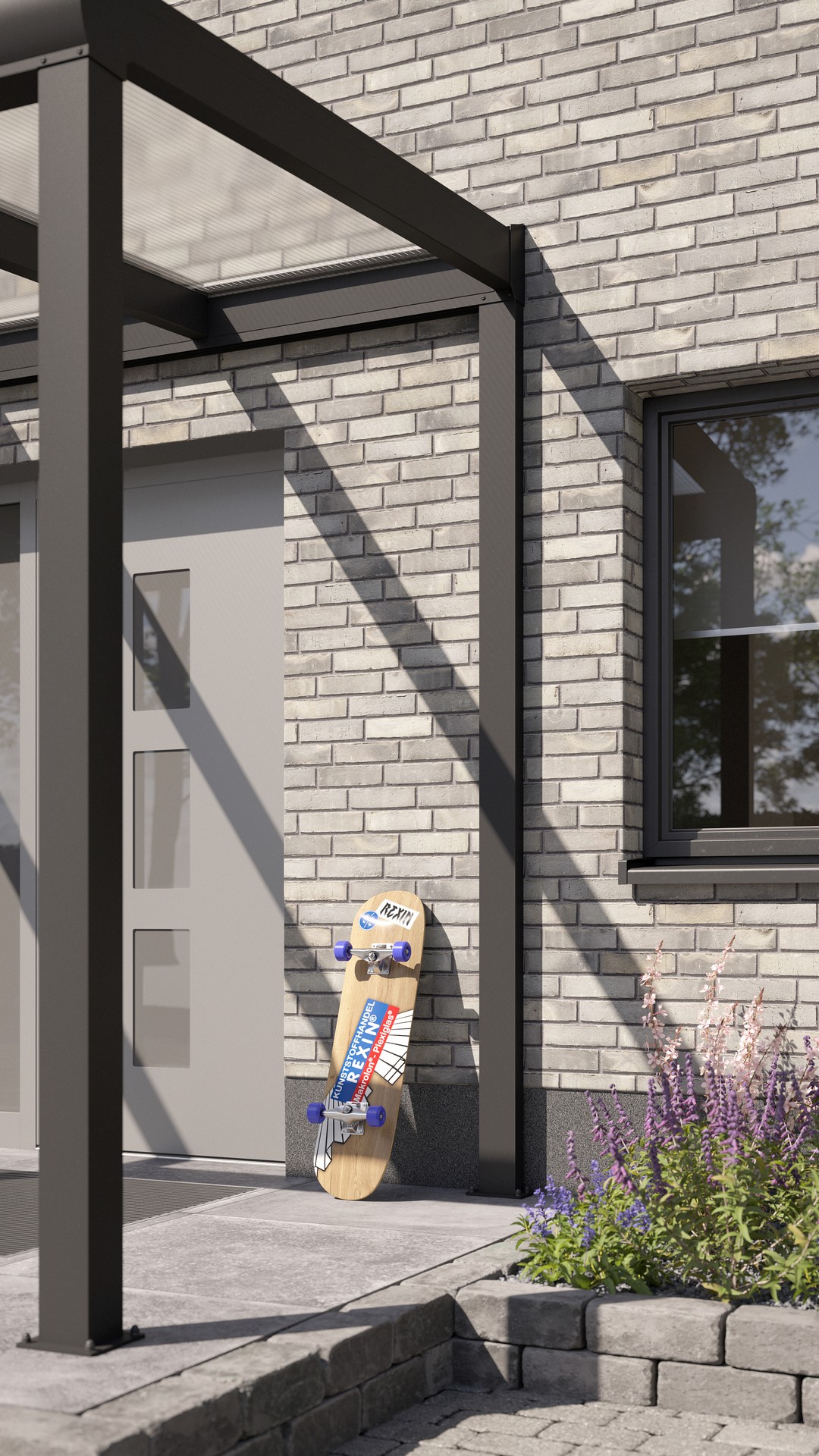 Mit REXOvita® wird Ihr Hauseingang noch praktischer und schöner. Die Dachkonstruktion schützt vor Regen, Schnee oder Hagel, der ansprechende Aluminium-Unterbau schmückt Ihre Fassade und sorgt für einen einladenden Eingangsbereich – das ganze Jahr über!