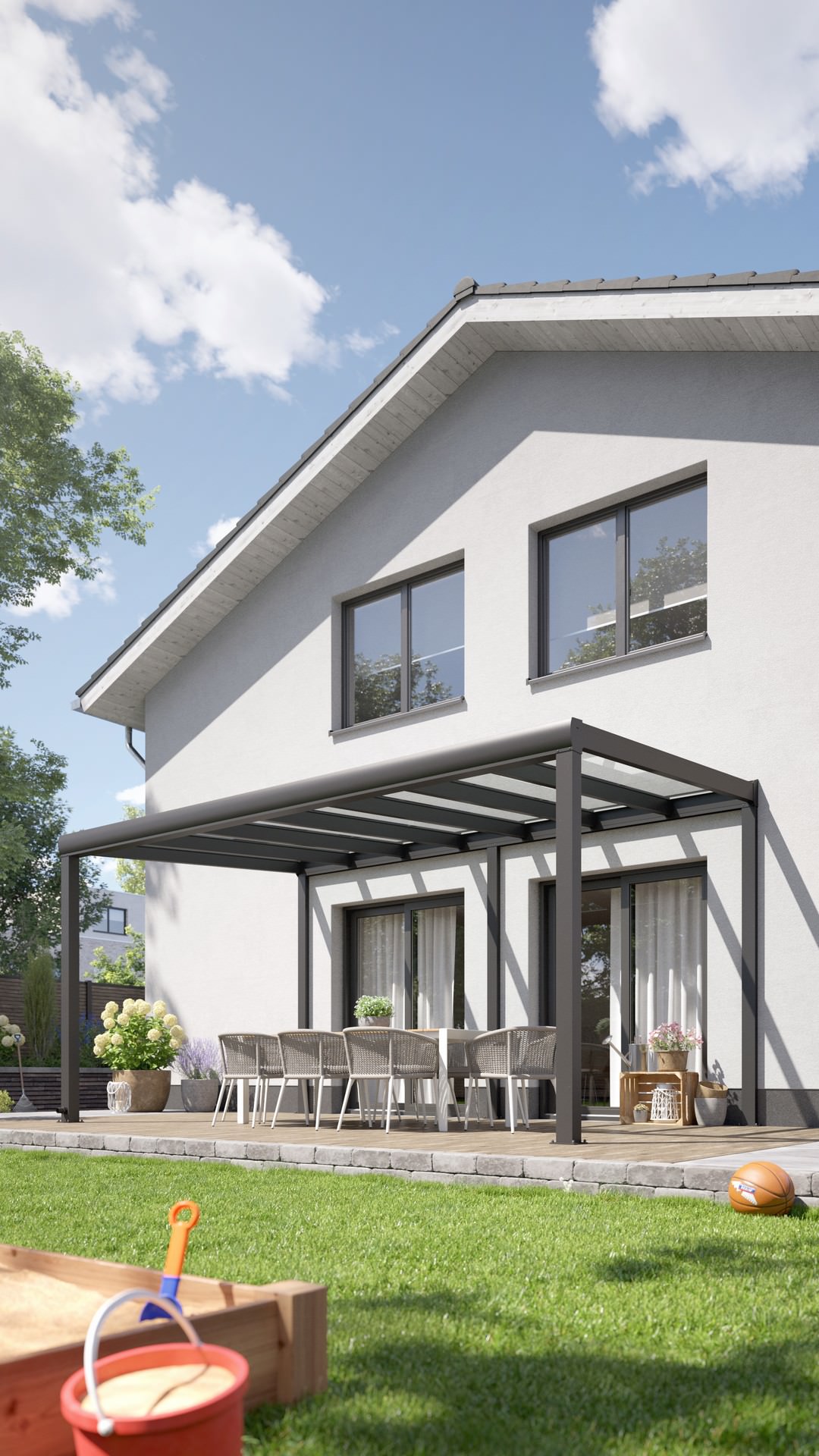 - Alu-Terrassenüberdachung aus Top-Materialien in zeitlosem Design