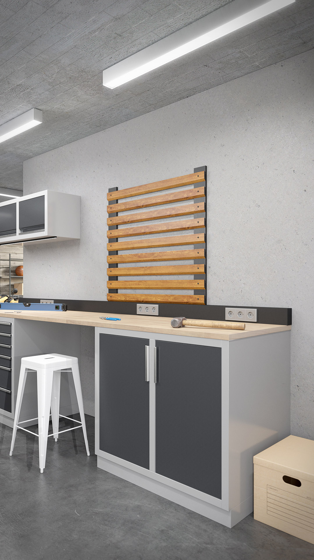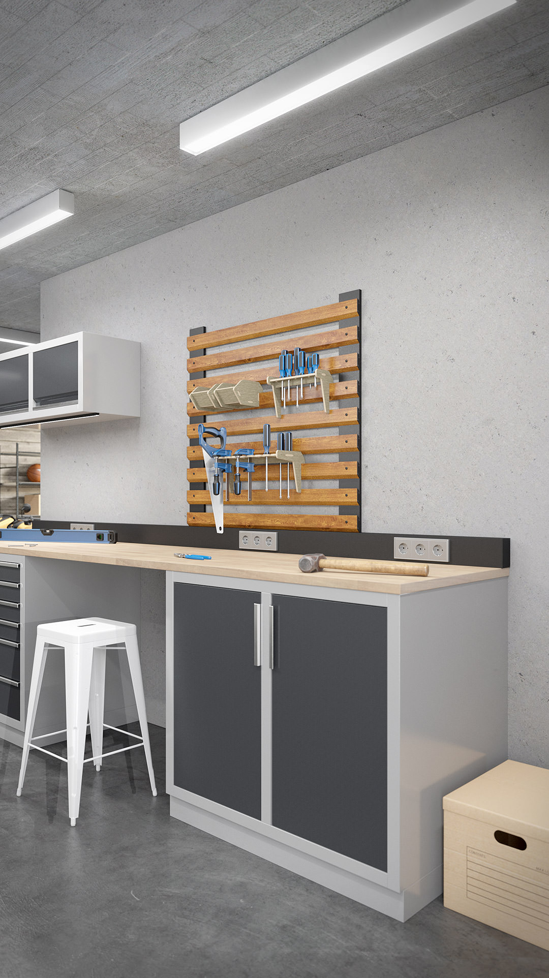 Die schräge Verbindung sorgt für eine hohe Stabilität und trägt auch schweres Werkzeug zuverlässig. Gleichzeitig bleibt alles griffbereit und übersichtlich organisiert. Das System verbindet Ordnung, Belastbarkeit und Flexibilität in einer Lösung, die jede Werkstatt effizienter macht.