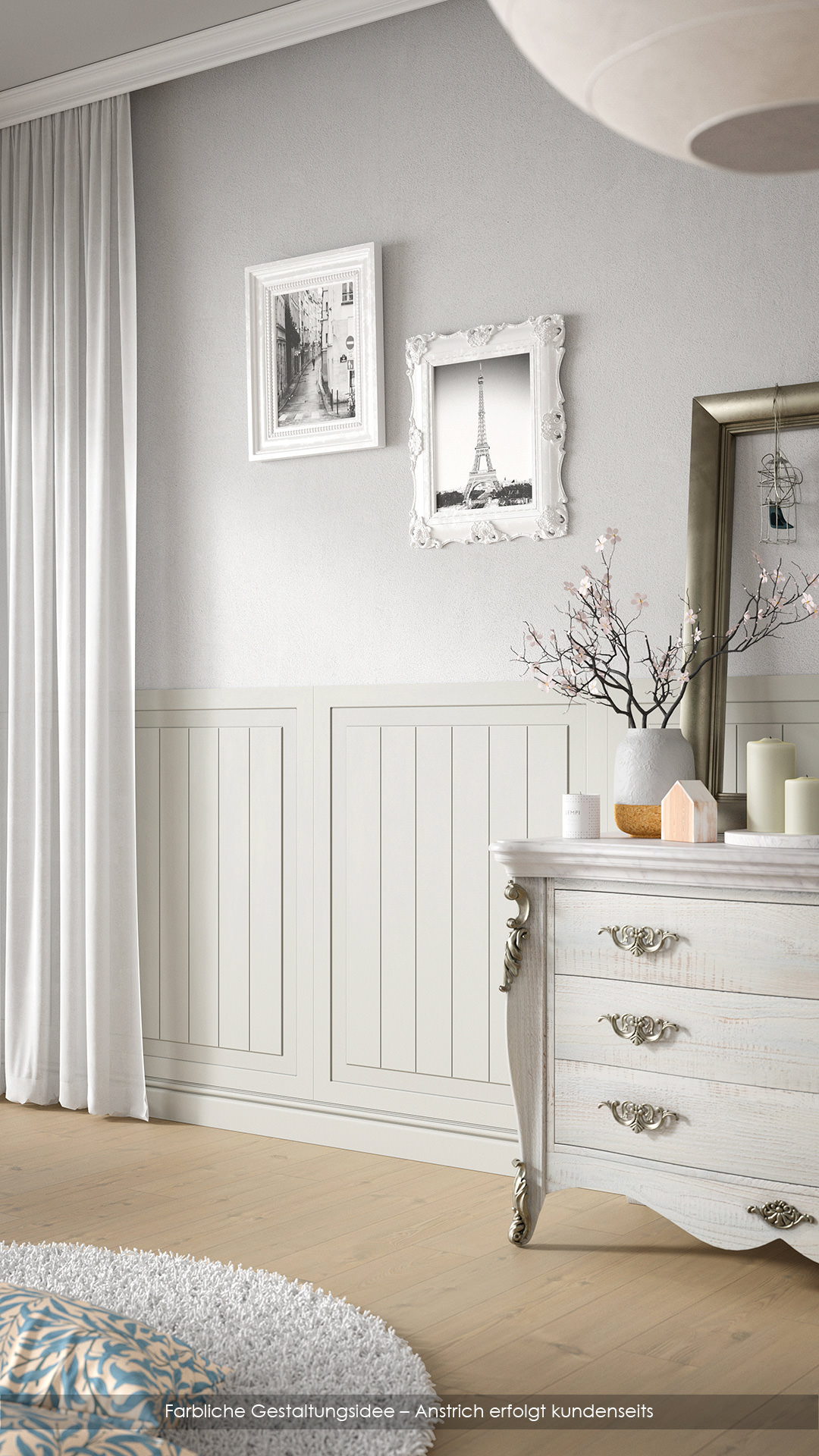 Hinweis: Die Paneele werden in naturfarben ohne Anstrich geliefert. Dieser kann individuell kundenseits erfolgen.