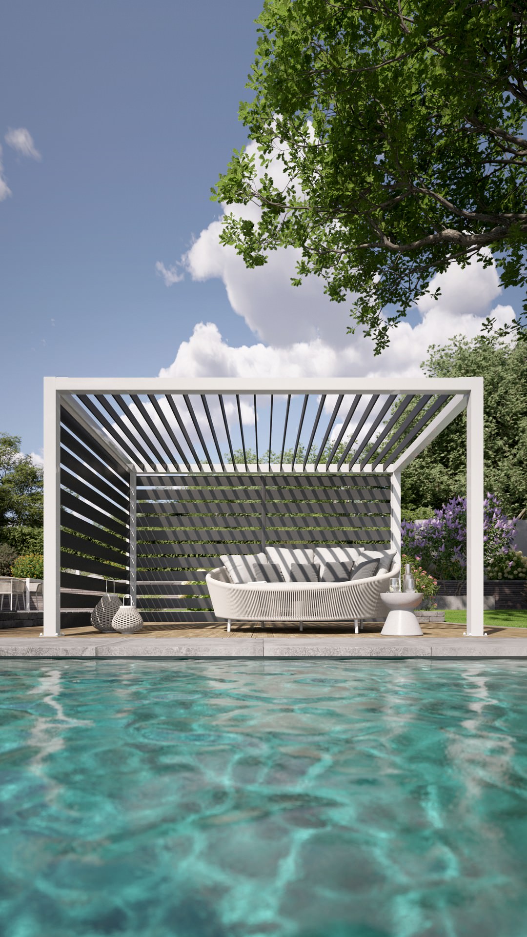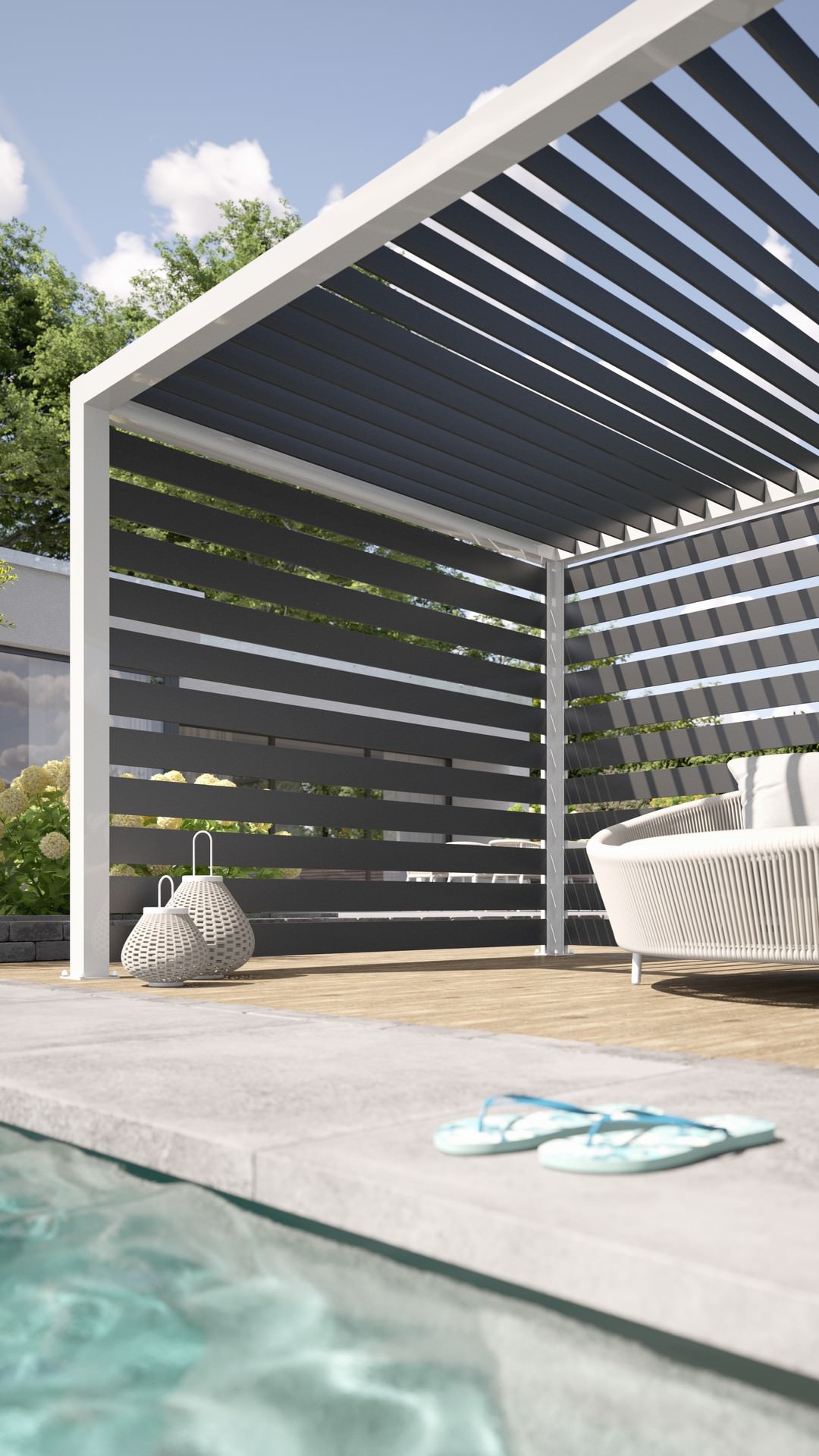 Mit einer Sprossenwand können Sie Ihre Pergola sinnvoll erweitern. Die Sprossenwand besteht aus 150mm hohen und 16mm starken Aluminiumsprossen und passt perfekt zu unseren REXOcube® Pergolen. So können Sie Ihre Pergola mit einem optisch ansprechenden Sichtschutz bzw. einem formschönen, architektonischen Element ausstatten. Unser Set enthält Sprossen, Alu-Profile sowie hochwertige Schrauben. Die Montage fällt leicht und ist auch von handwerklichen Laien schnell erledigt.