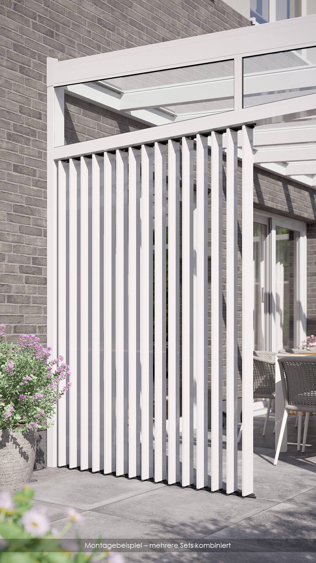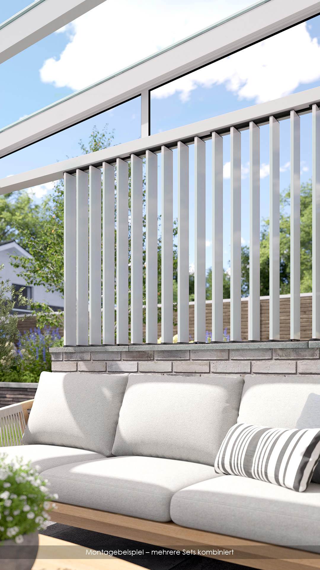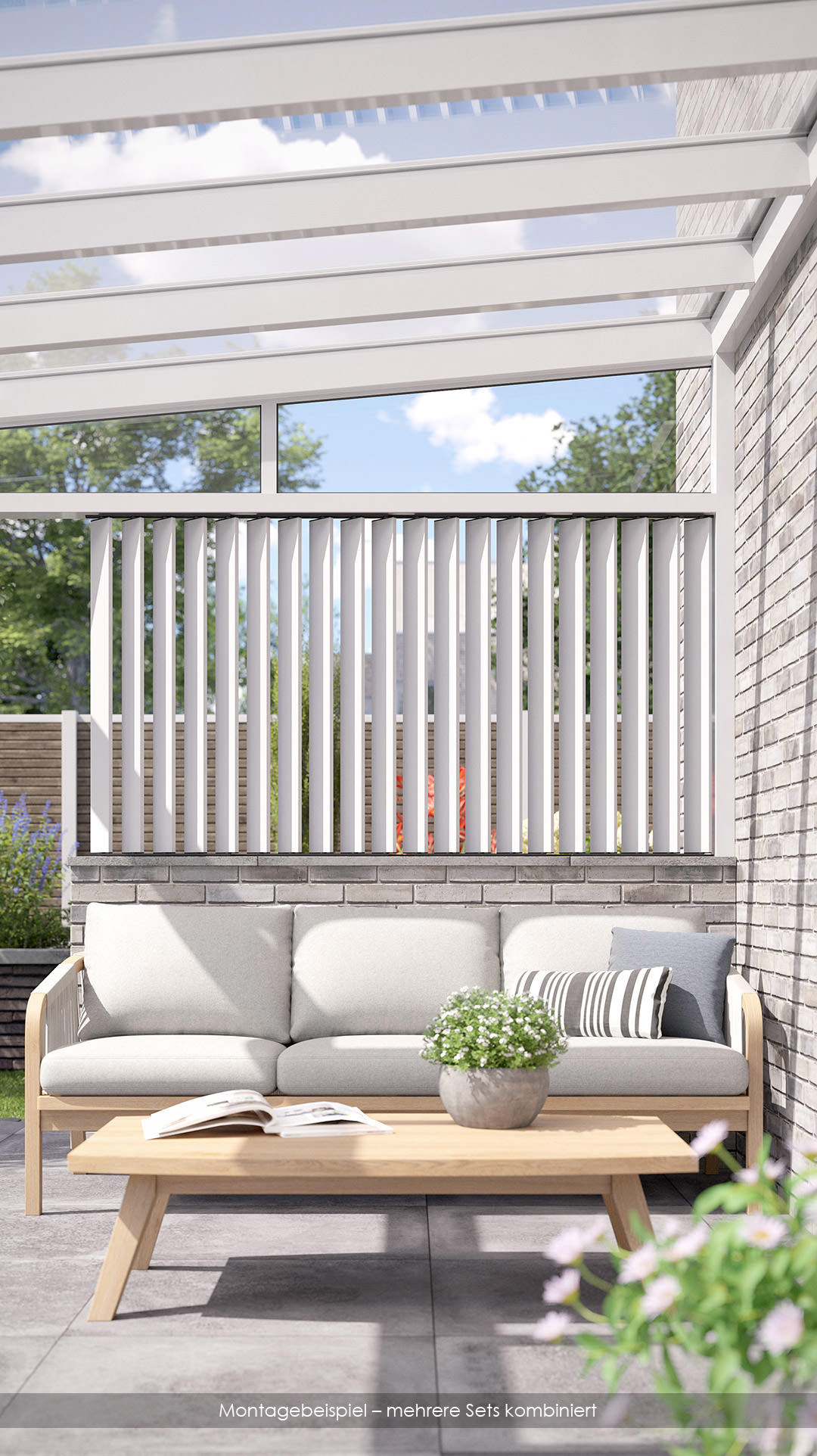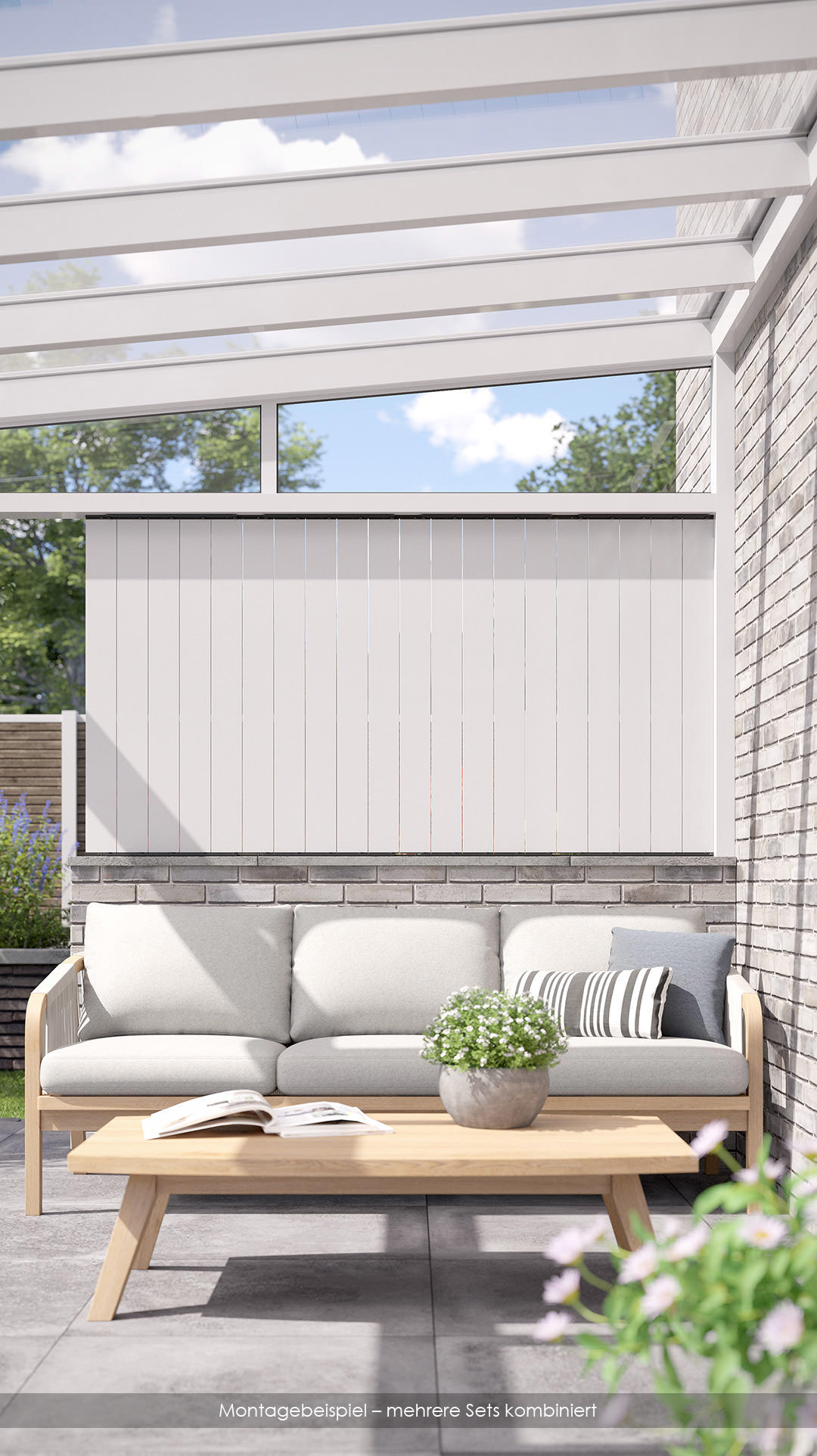 Hinweis: Unser Montageset enthält fünf Lamellen. Je nach gewünschter Breite lassen sich mehrere Sets kombinieren und durchgehend montieren.