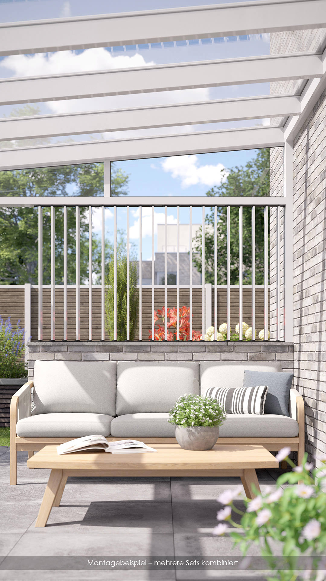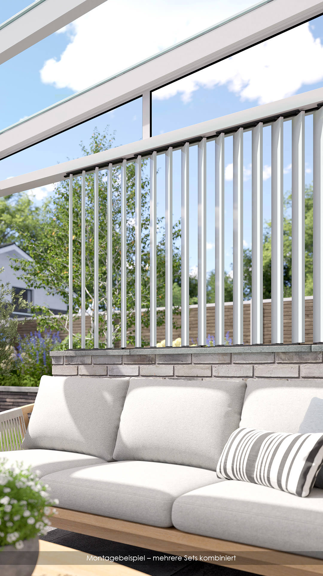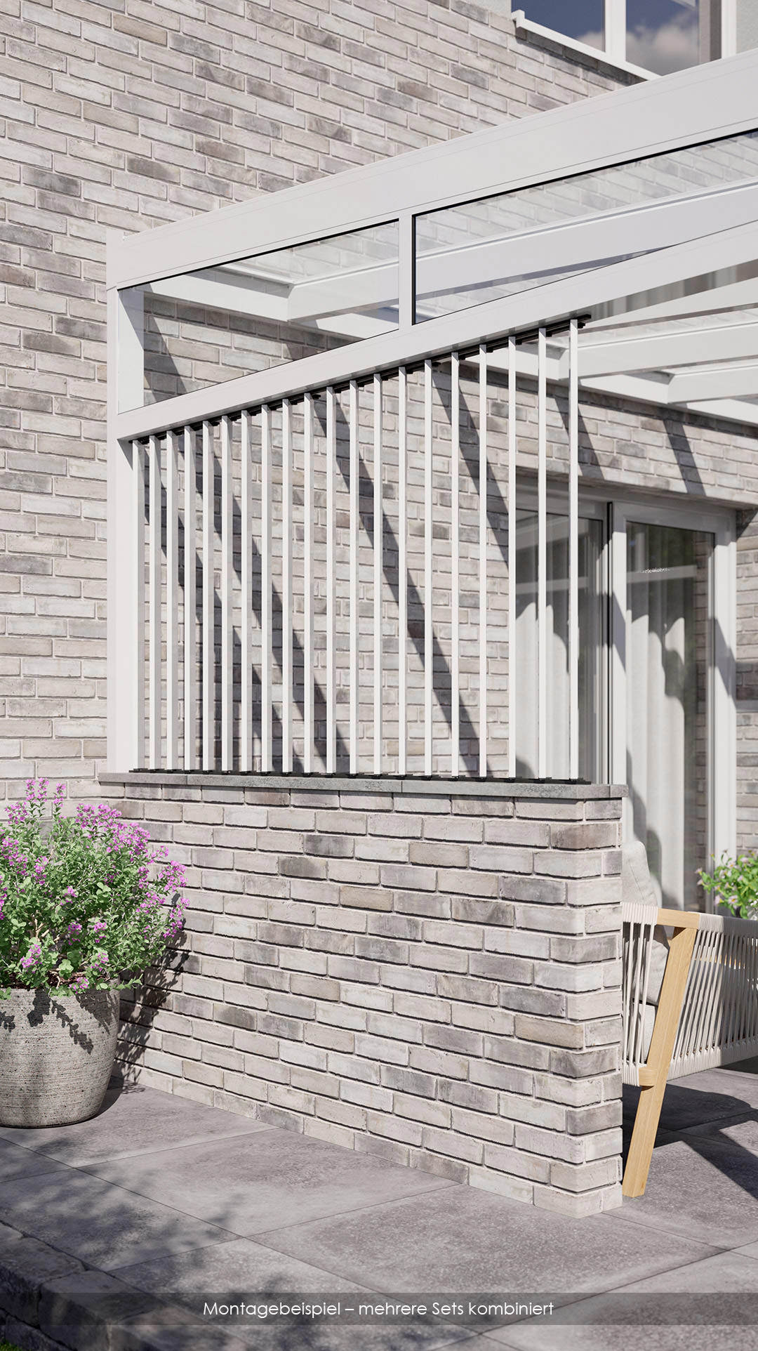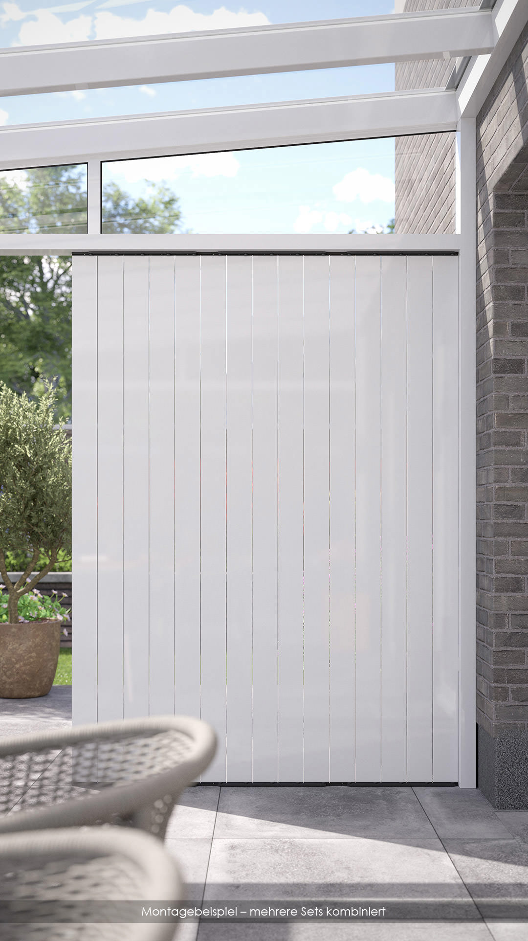 Hinweis: Unser Montageset enthält fünf Lamellen. Je nach gewünschter Breite lassen sich mehrere Sets kombinieren und durchgehend montieren.