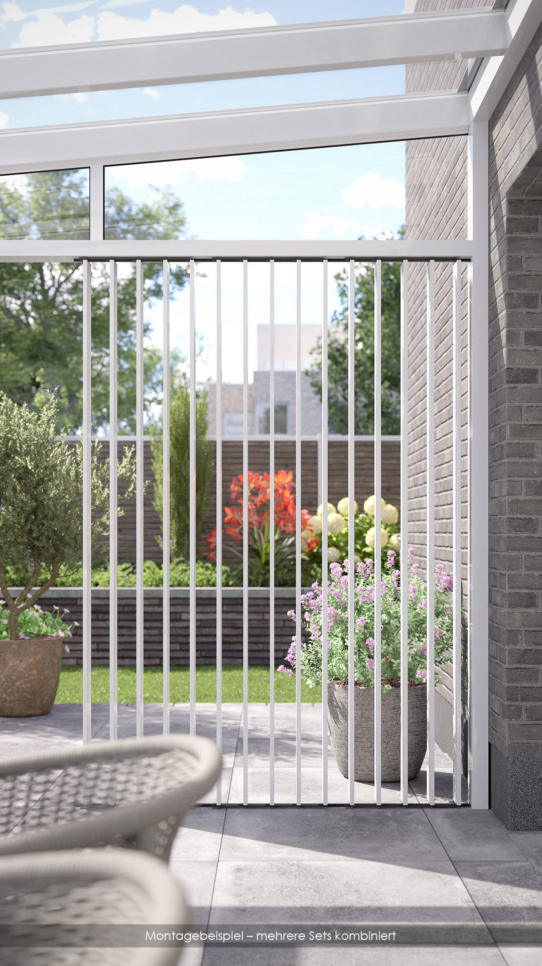 Die REXOvelis® Lamellenwand ist eine flexible, verstellbare Seitenwand für Ihre Terrassenüberdachung, die Sie ganz einfach öffnen und schließen können.