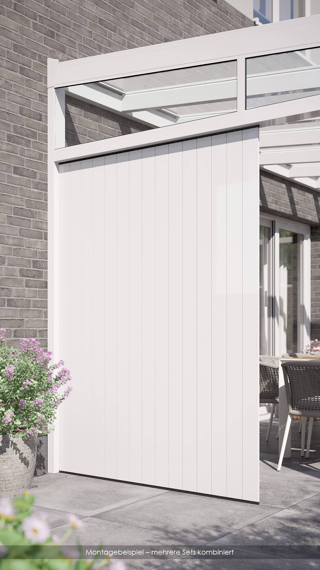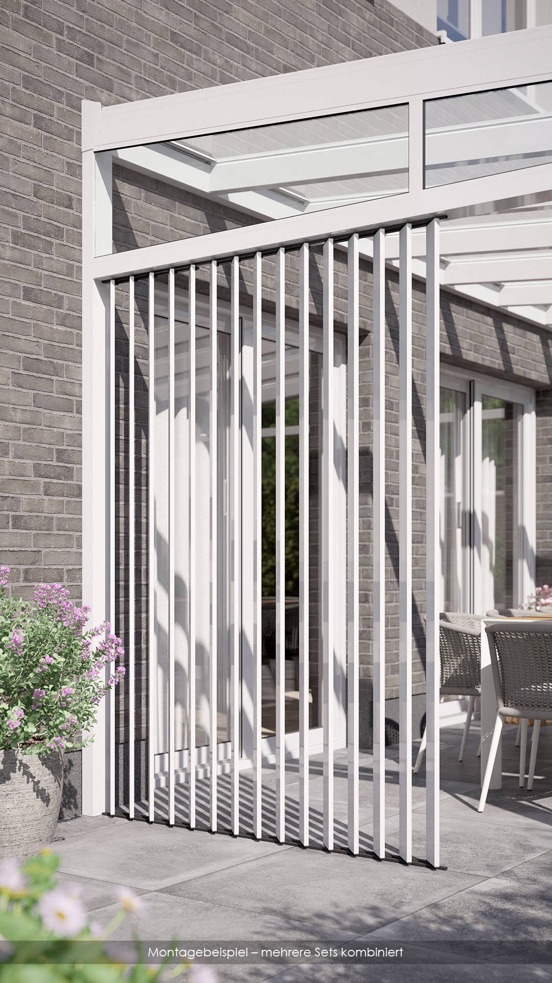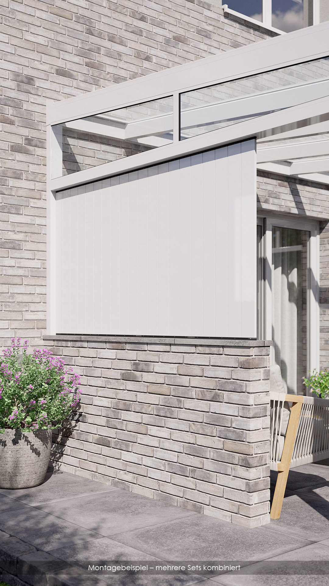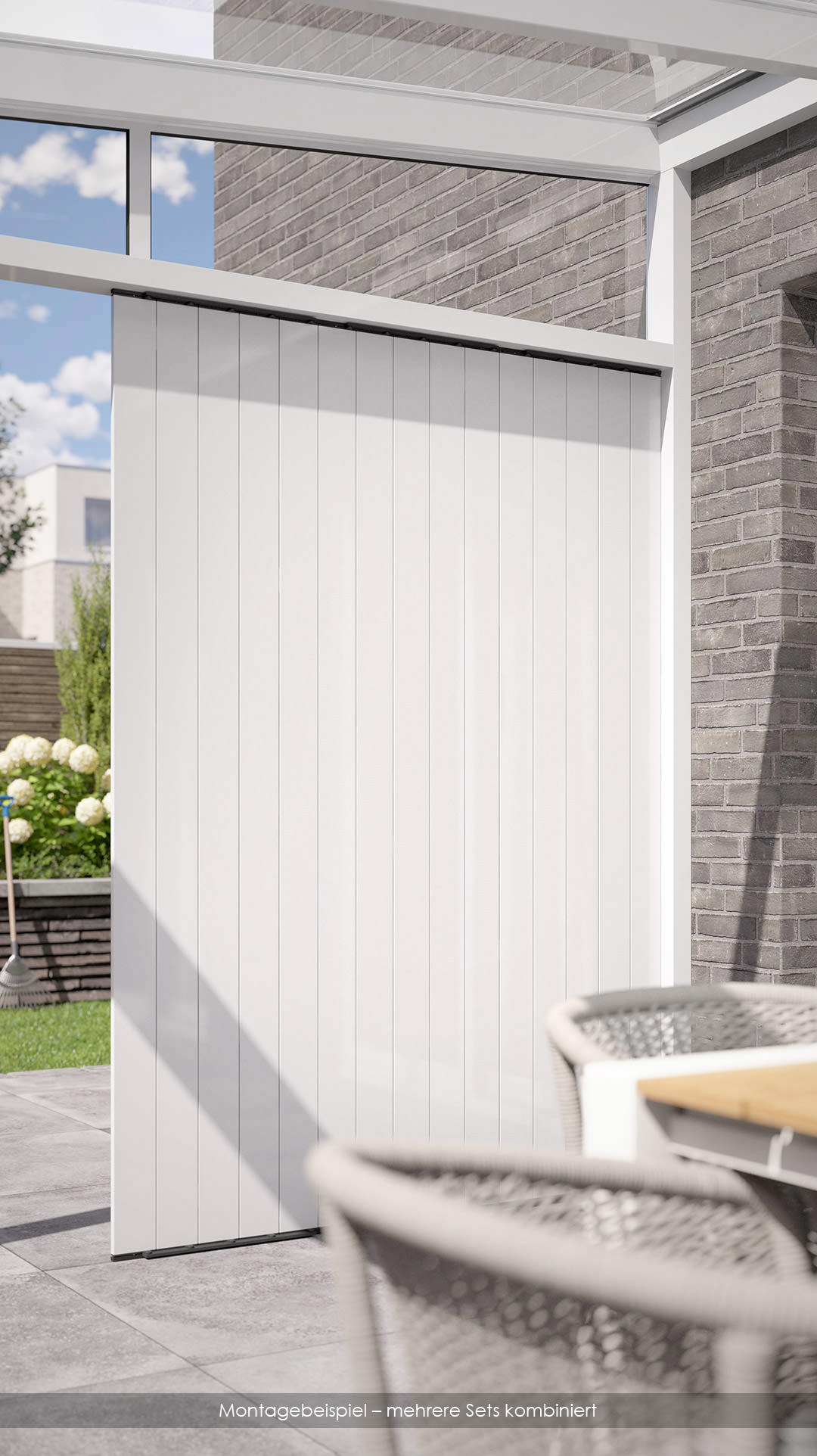 Kombinieren Sie REXOvelis® mit unseren Seitenkeilen, um Ihre Terrassenüberdachung mit einer hochwertigen, variablen Seitenwand auszustatten.