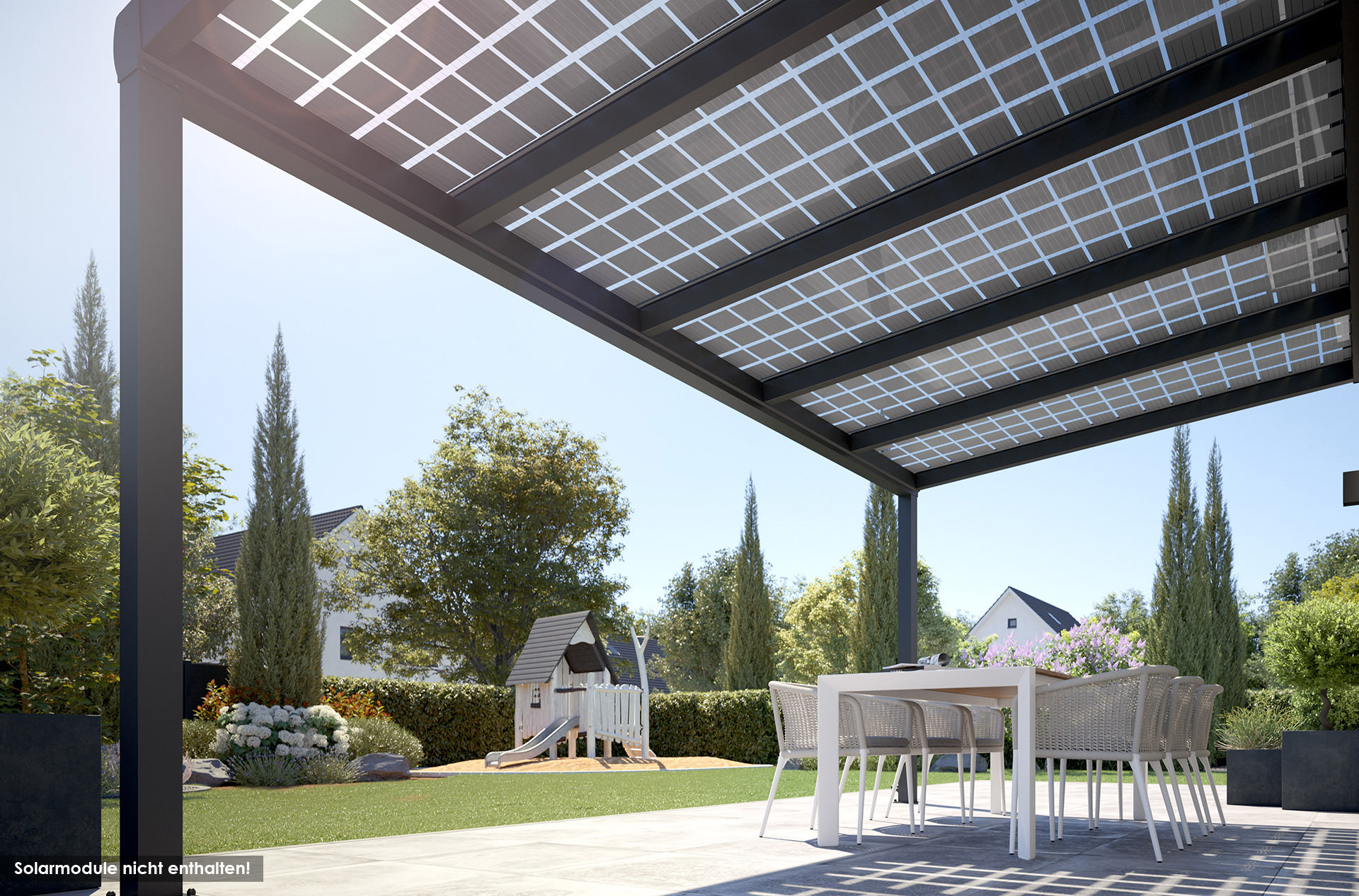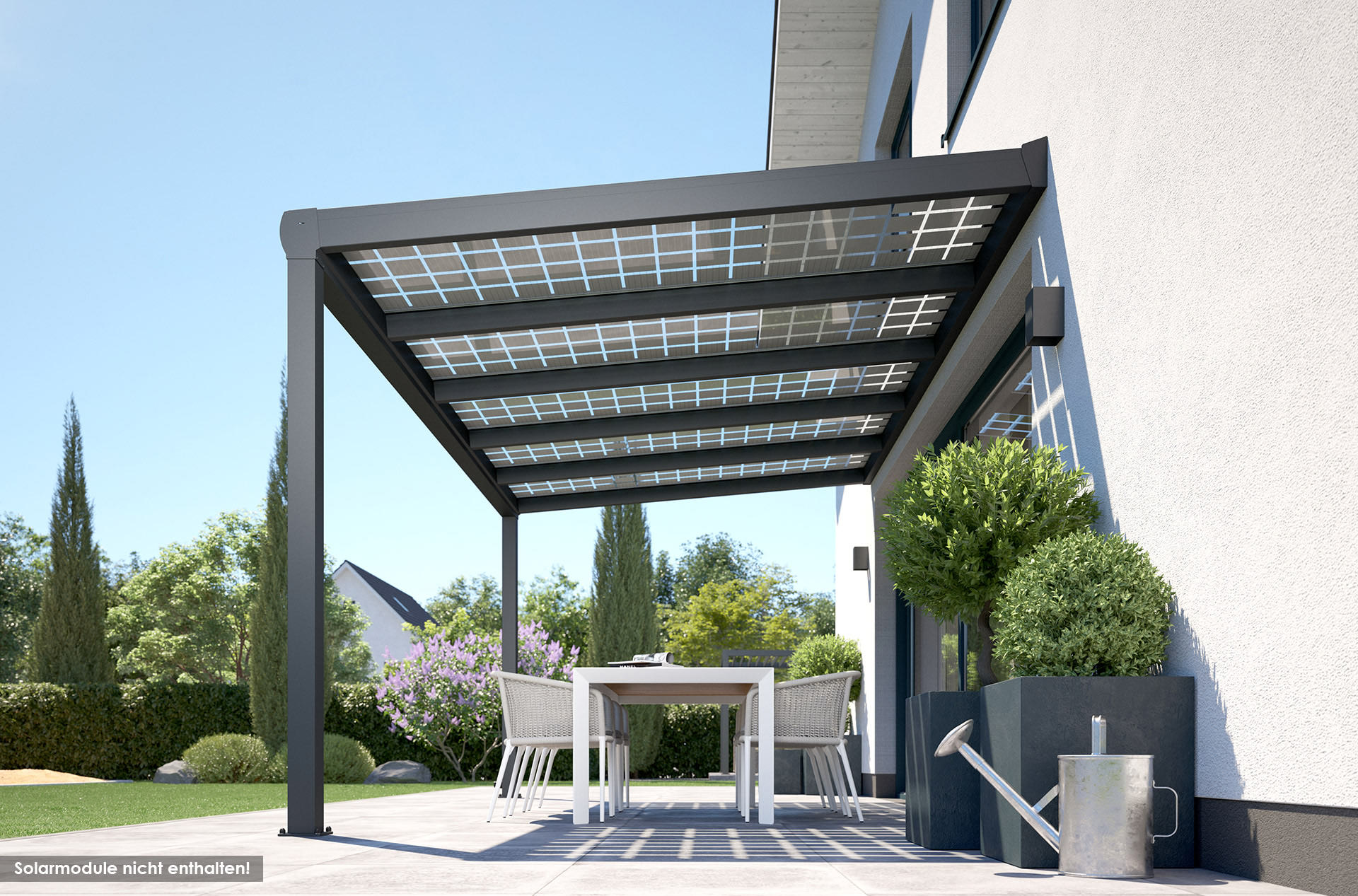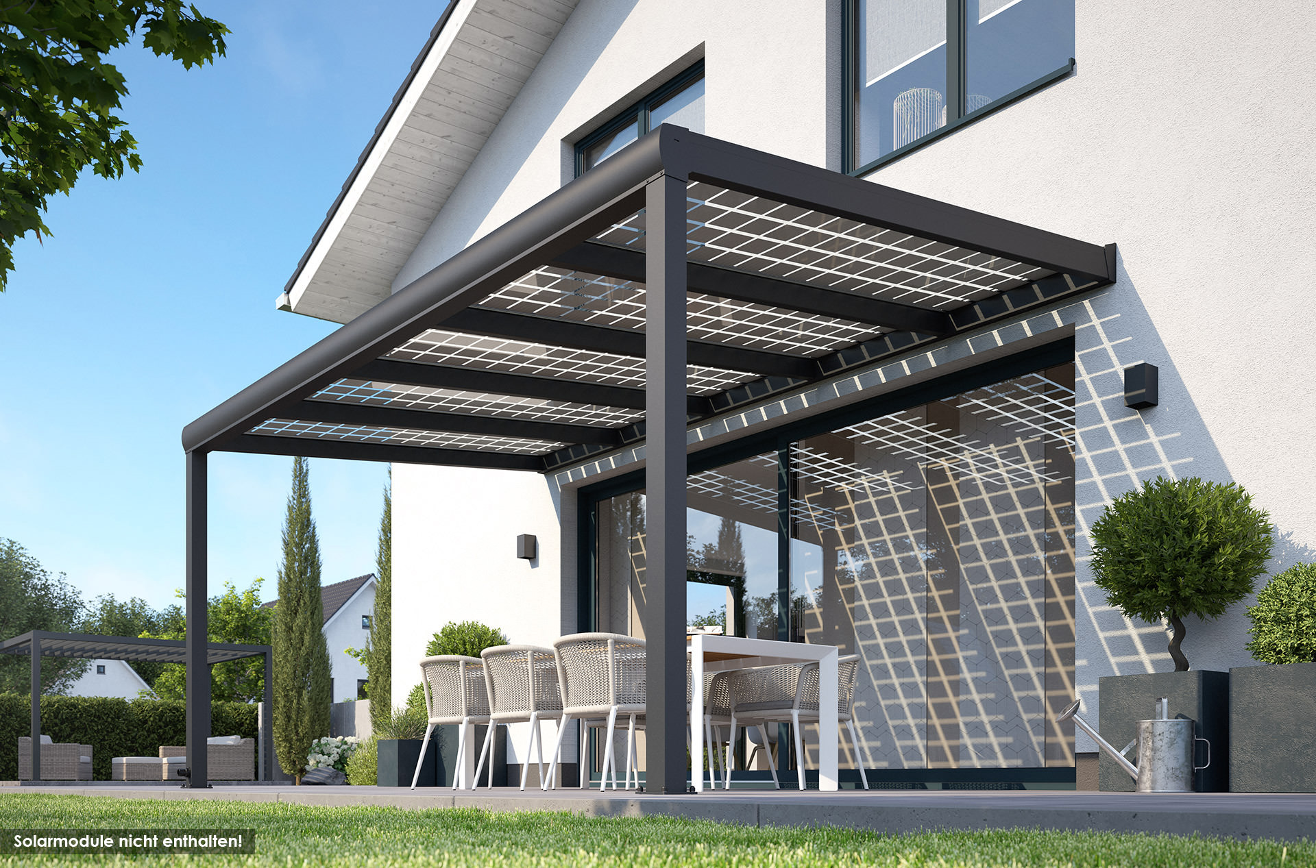 - Solar Alu-Terrassendach, vorbereitet für Photovoltaik-Module (8-10 mm)