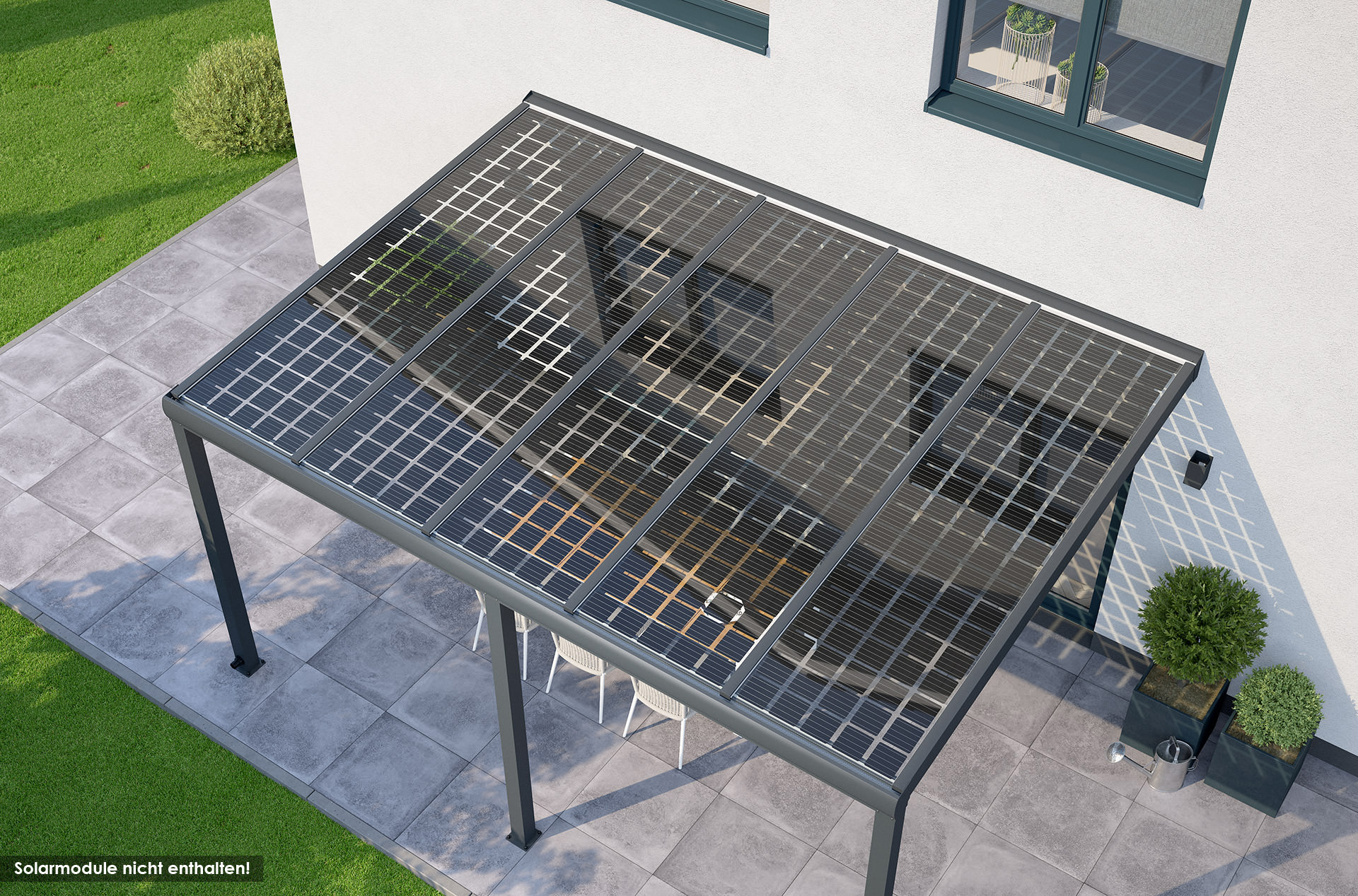 - Solar Alu-Terrassendach, vorbereitet für Photovoltaik-Module (8-10 mm)