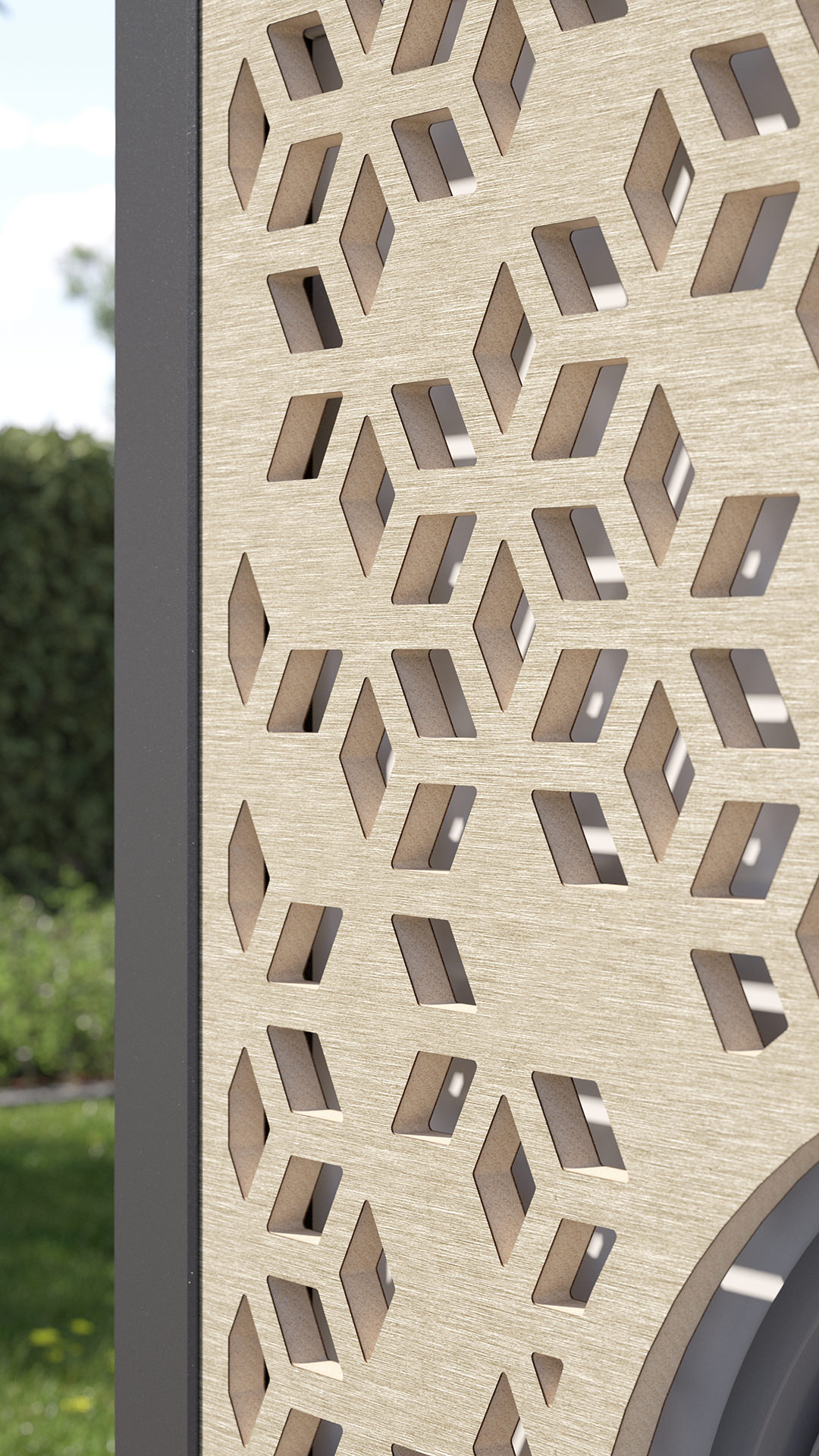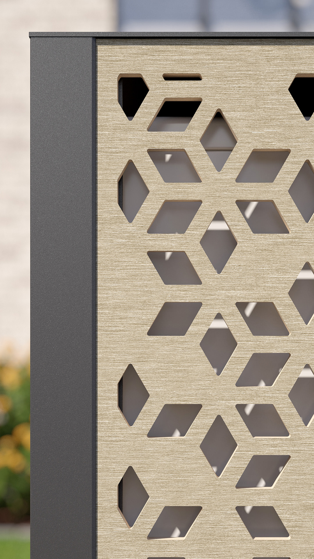 Die REXOenergy® Wärmepumpenverkleidung schützt Ihre Wärmepumpe vor Witterung und Vandalismus. Der hochwertige Materialmix aus Aluminium und einer Füllung aus REXOnuma® ist langlebig, äußerst wetterfest und somit ideal für den Außeneinsatz geeignet. Das dekorative Design der Wärmepumpenverkleidung besticht durch seine anspruchsvolle Optik und sichert zudem eine adäquate Luftzufuhr für die Wärmepumpe.