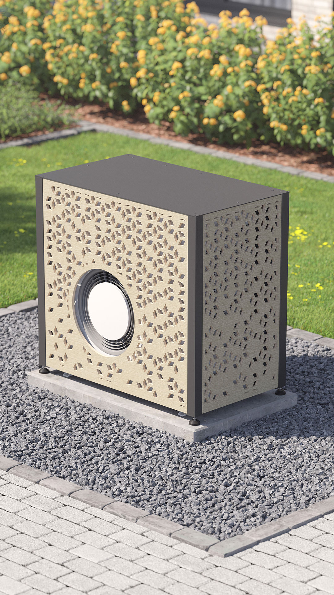 Wir haben hierfür eine elegante Lösung: Mit der REXOenergy® Wärmepumpenverkleidung verschaffen Sie Ihrer Wärmepumpe ein attraktives Äußeres, ohne die Funktionalität zu beeinträchtigen. So wird der Eindruck eines störenden Fremdkörpers vor dem Haus minimiert. Die Verkleidung verbessert das äußere Erscheinungsbild Ihrer Wärmepumpe und integriert sie nahtlos in die Umgebung Ihres Hauses oder Gartens.