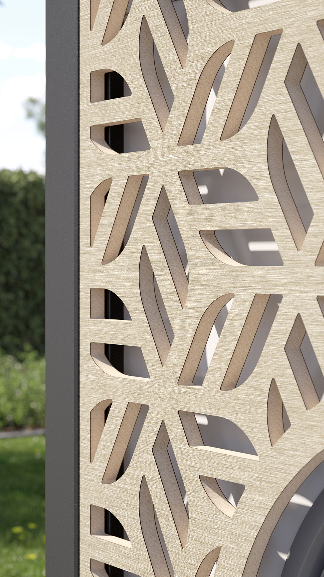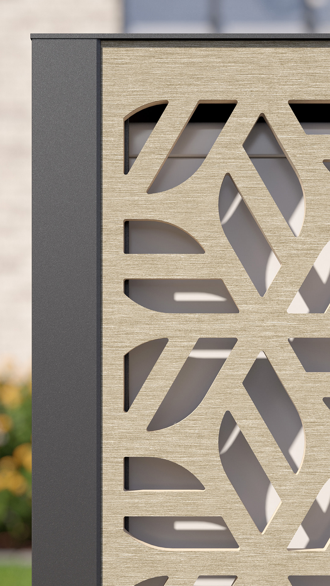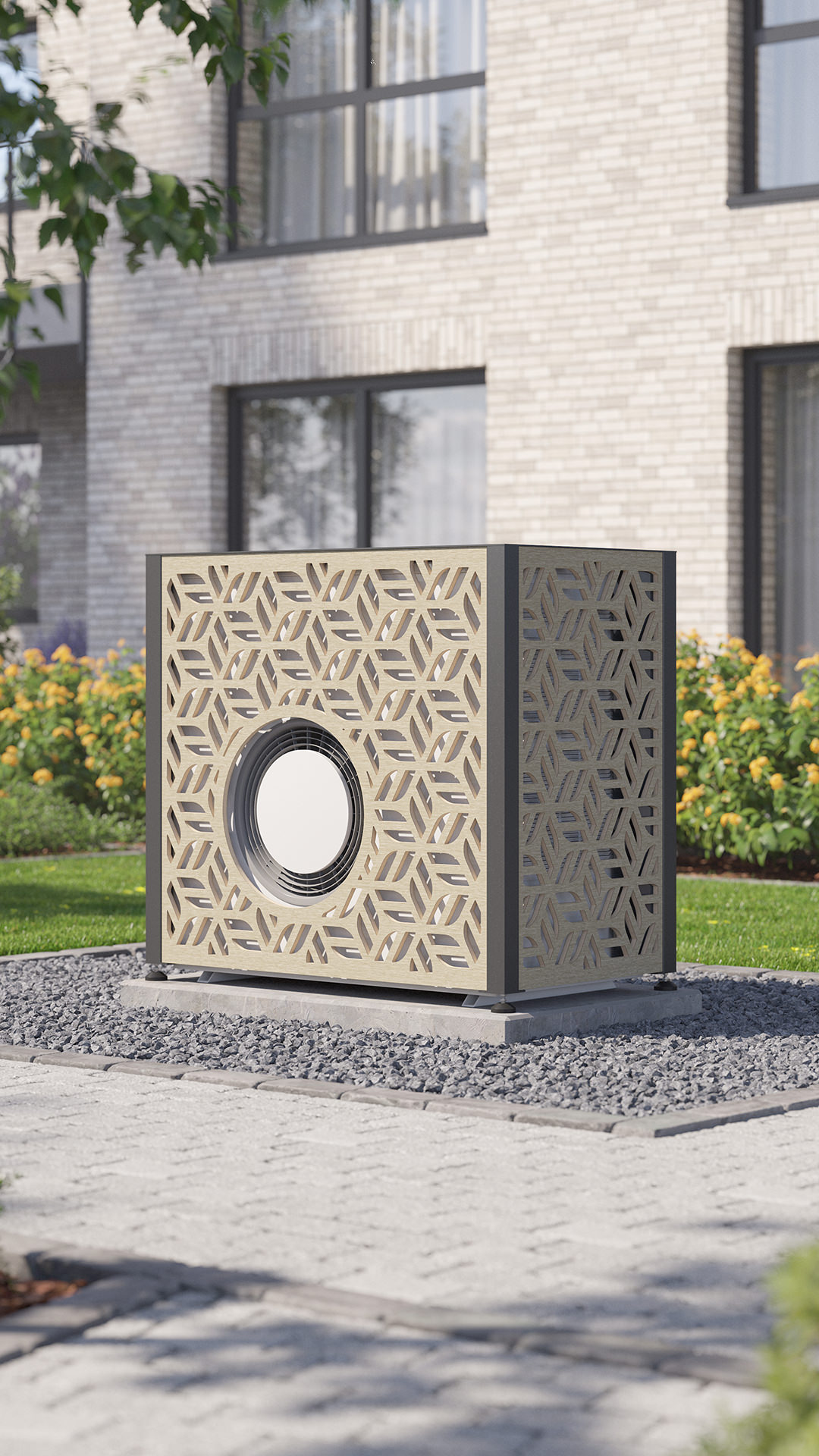 Die REXOenergy® Wärmepumpenverkleidung schützt Ihre Wärmepumpe vor Witterung und Vandalismus. Der hochwertige Materialmix aus Aluminium und einer Füllung aus REXOnuma® ist langlebig, äußerst wetterfest und somit ideal für den Außeneinsatz geeignet. Das dekorative Design der Wärmepumpenverkleidung besticht durch seine anspruchsvolle Optik und sichert zudem eine adäquate Luftzufuhr für die Wärmepumpe.