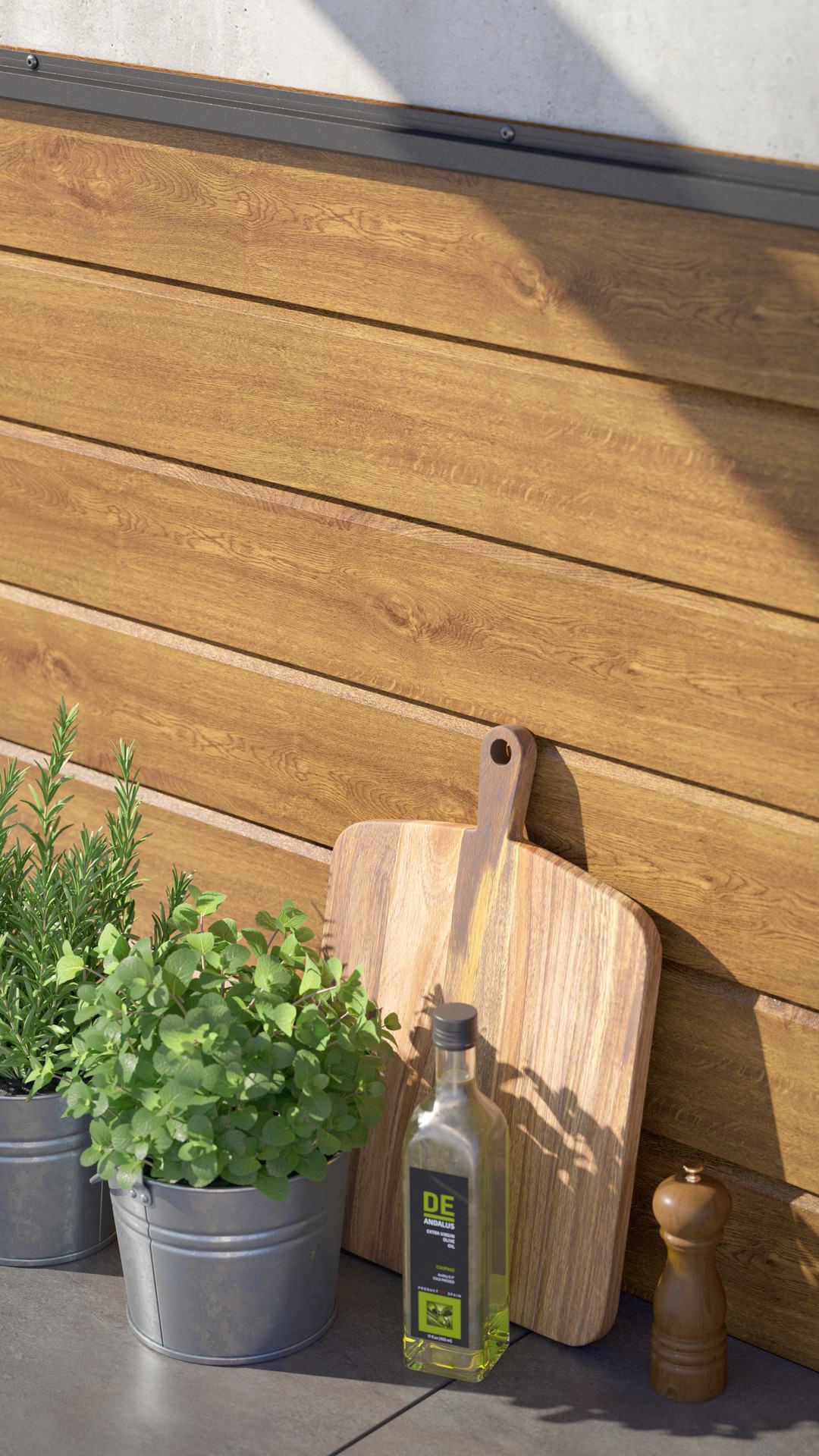 - Wetterfeste Beschichtung in attraktivem Holzdekor