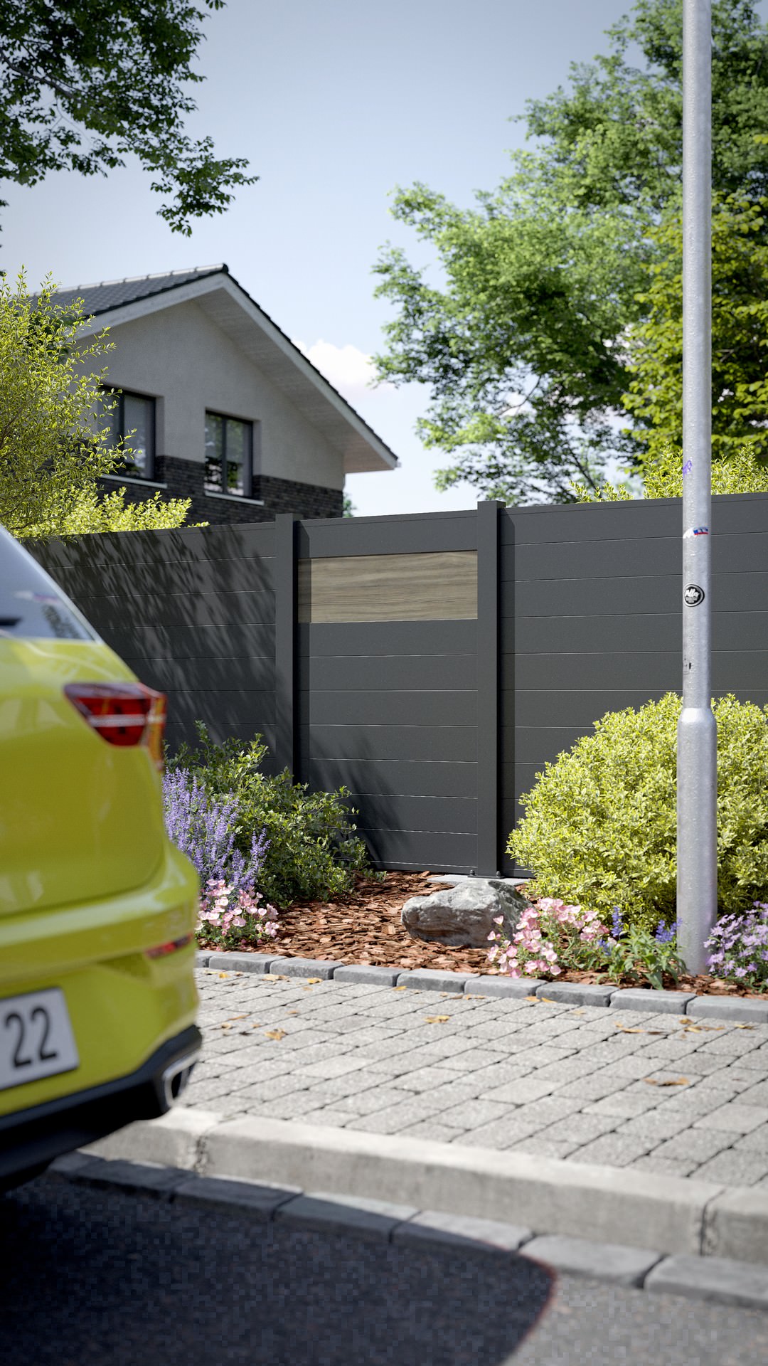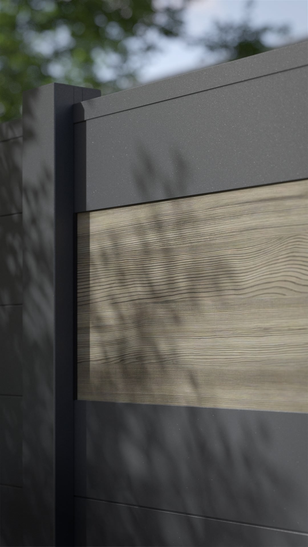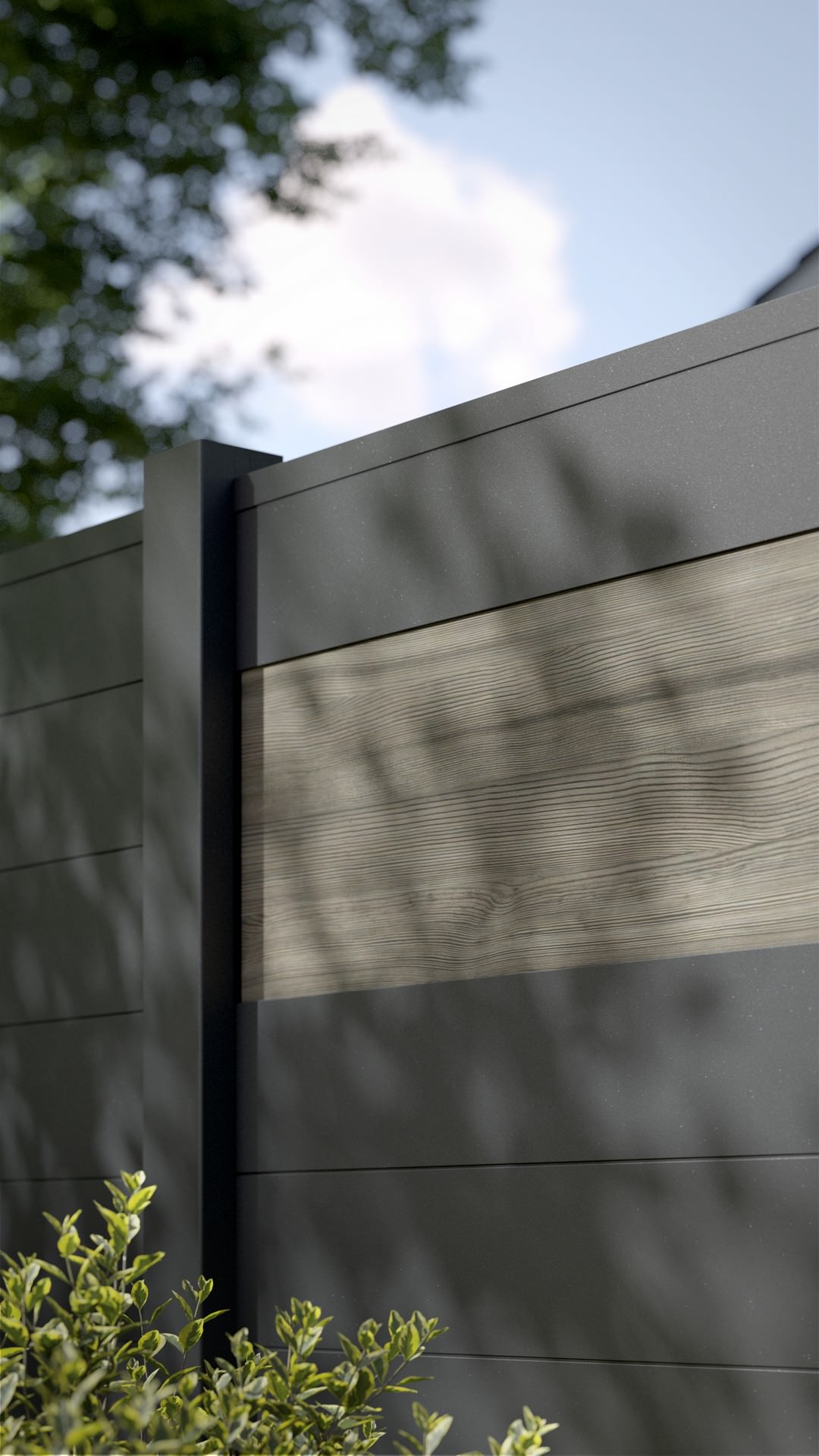 Mit einem REXOprotect® Alu-Sichtschutzzaun mit Holzstruktur-Zaunelement erstellen Sie einen hochwertigen Zaun oder einen Sichtschutz für Ihren Garten oder die Terrasse.