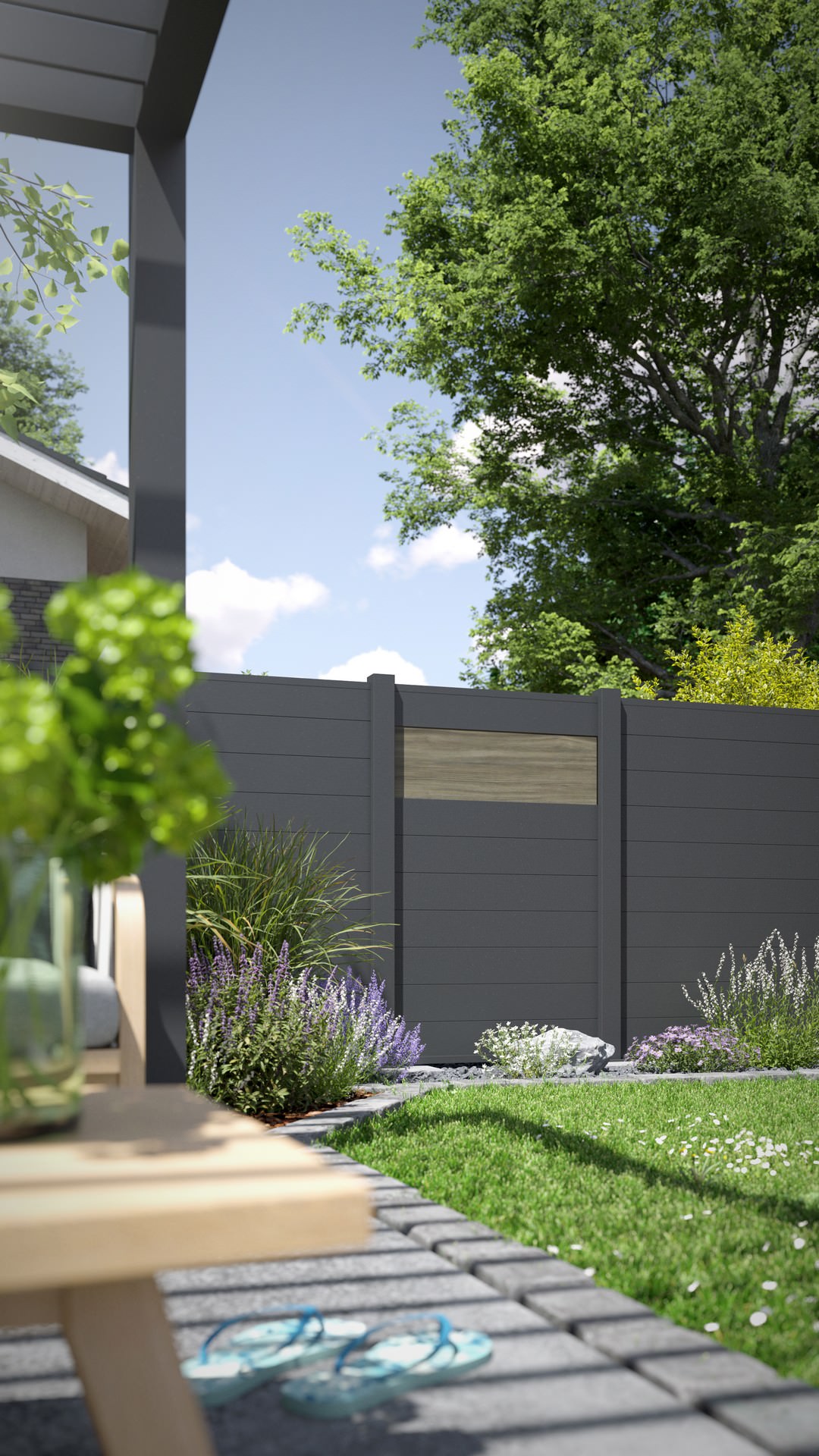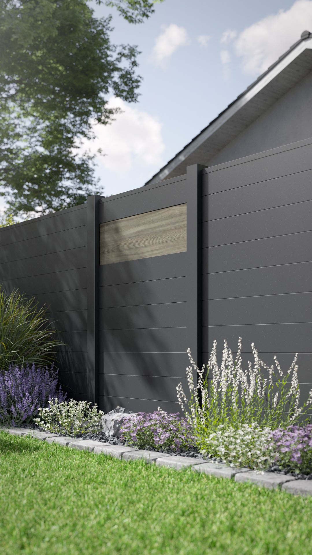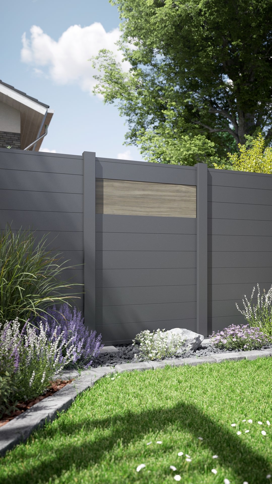 Mit einem REXOprotect® Alu-Sichtschutzzaun mit Holzstruktur-Zaunelement erstellen Sie einen hochwertigen Zaun oder einen Sichtschutz für Ihren Garten oder die Terrasse.