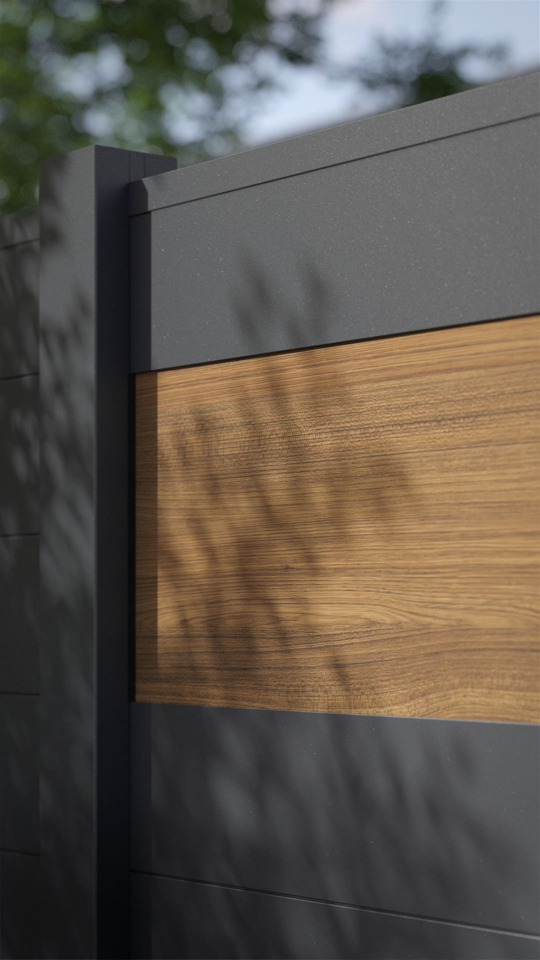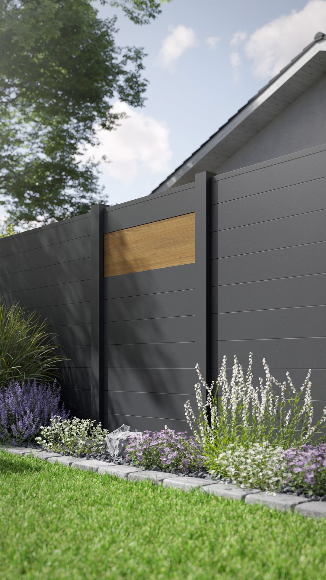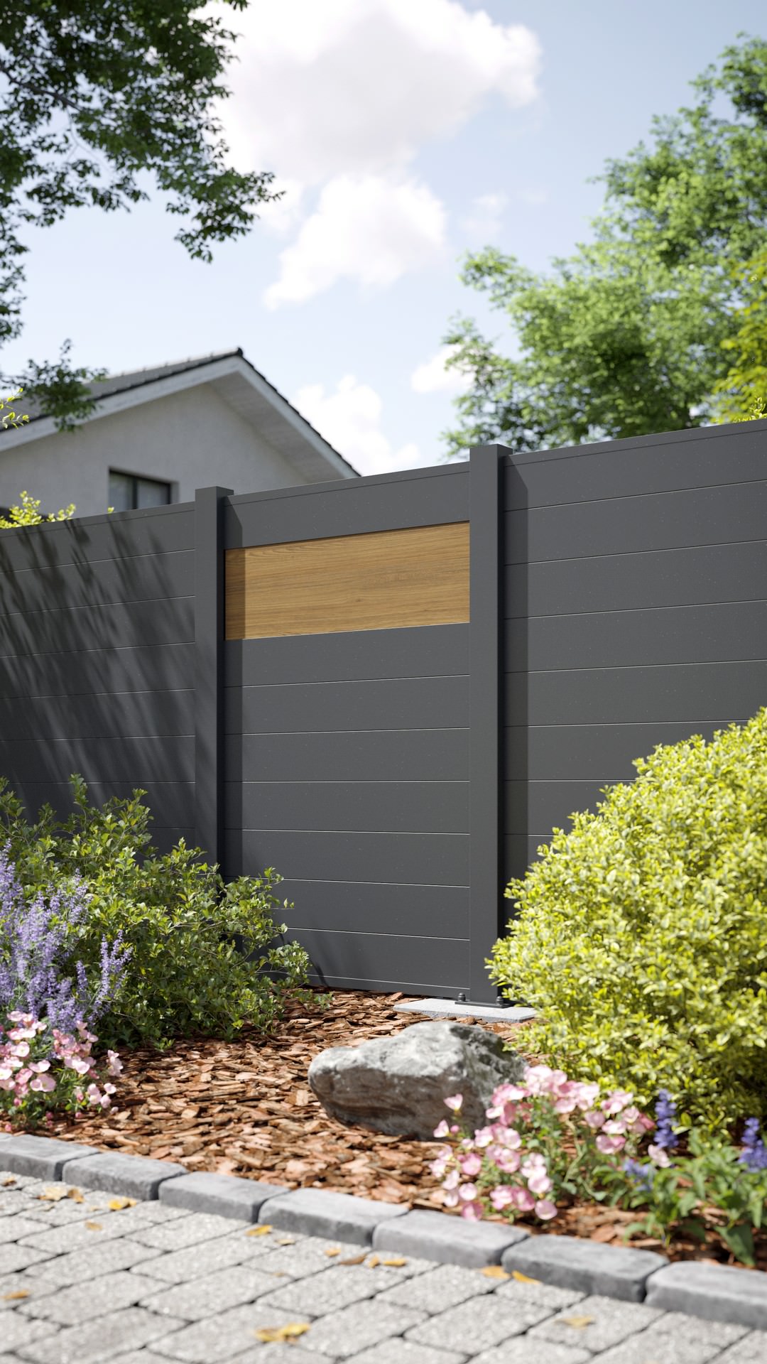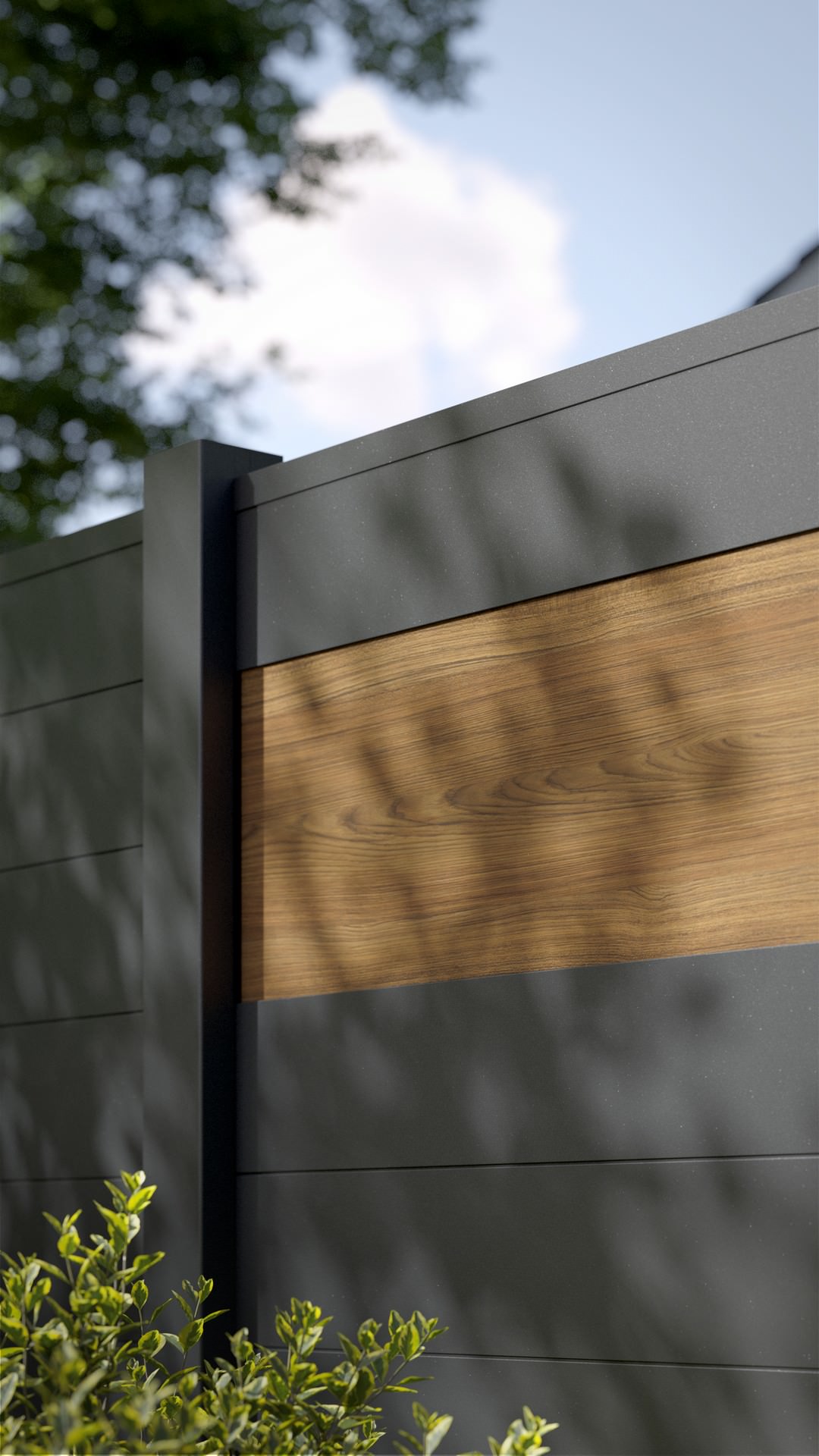 Mit einem REXOprotect® Alu-Sichtschutzzaun mit Holzstruktur-Zaunelement erstellen Sie einen hochwertigen Zaun oder einen Sichtschutz für Ihren Garten oder die Terrasse.