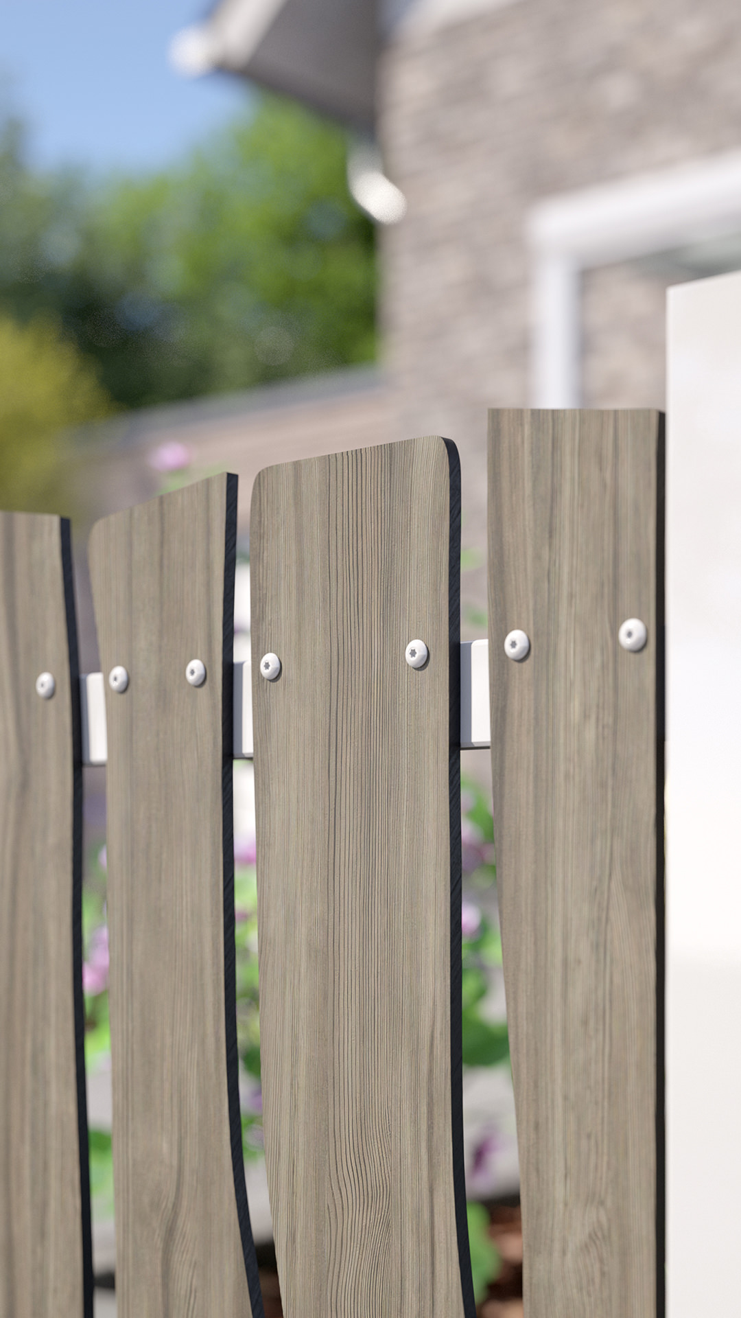 - Lattenzaun aus hochwertigem HPL, Holzdekor 'Graue Kiefer'
