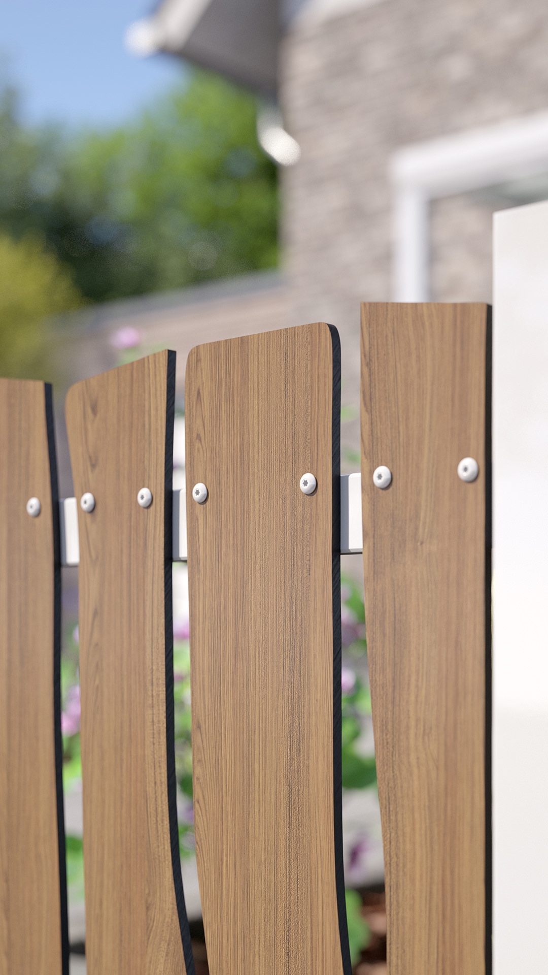- Lattenzaun aus hochwertigem HPL, Holzdekor 'Teak'