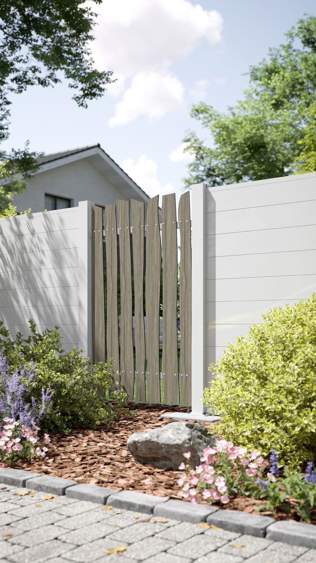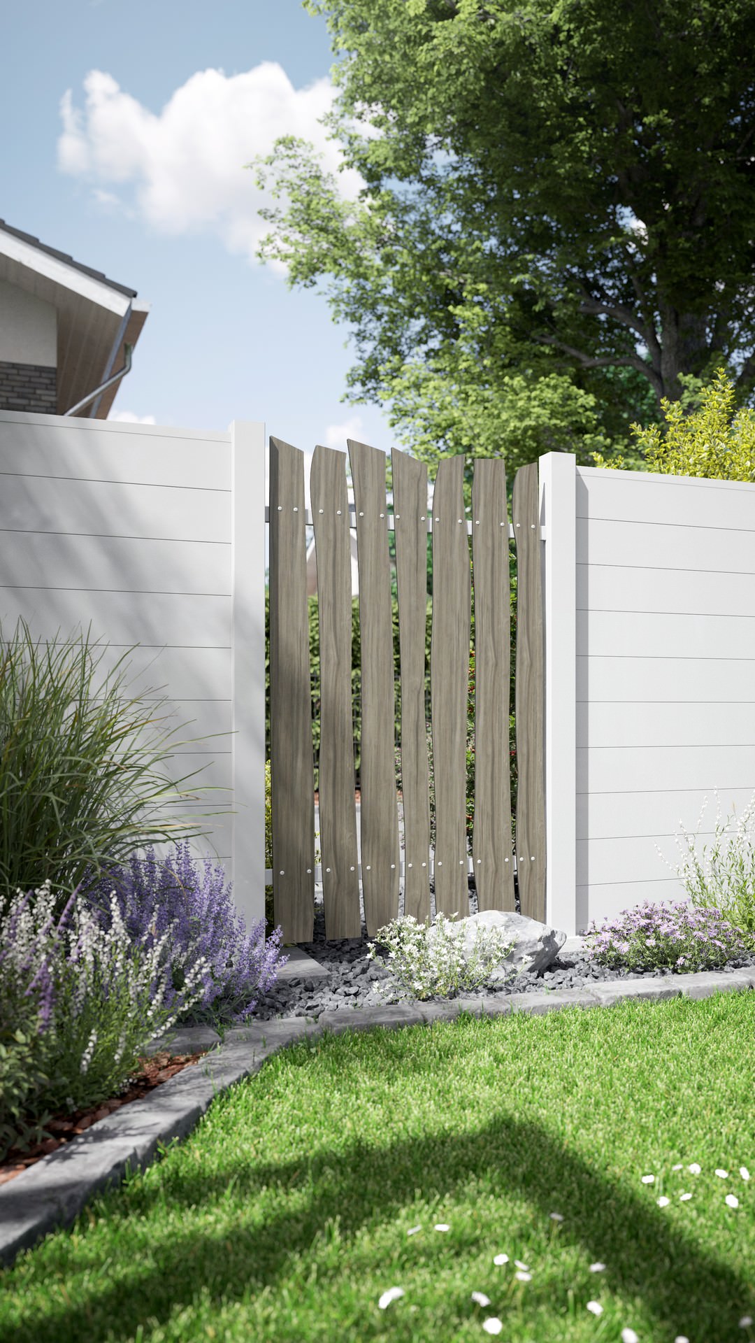 - vertikale Verbauung für einen Lattenzaun mit einem außerordentlichen Design