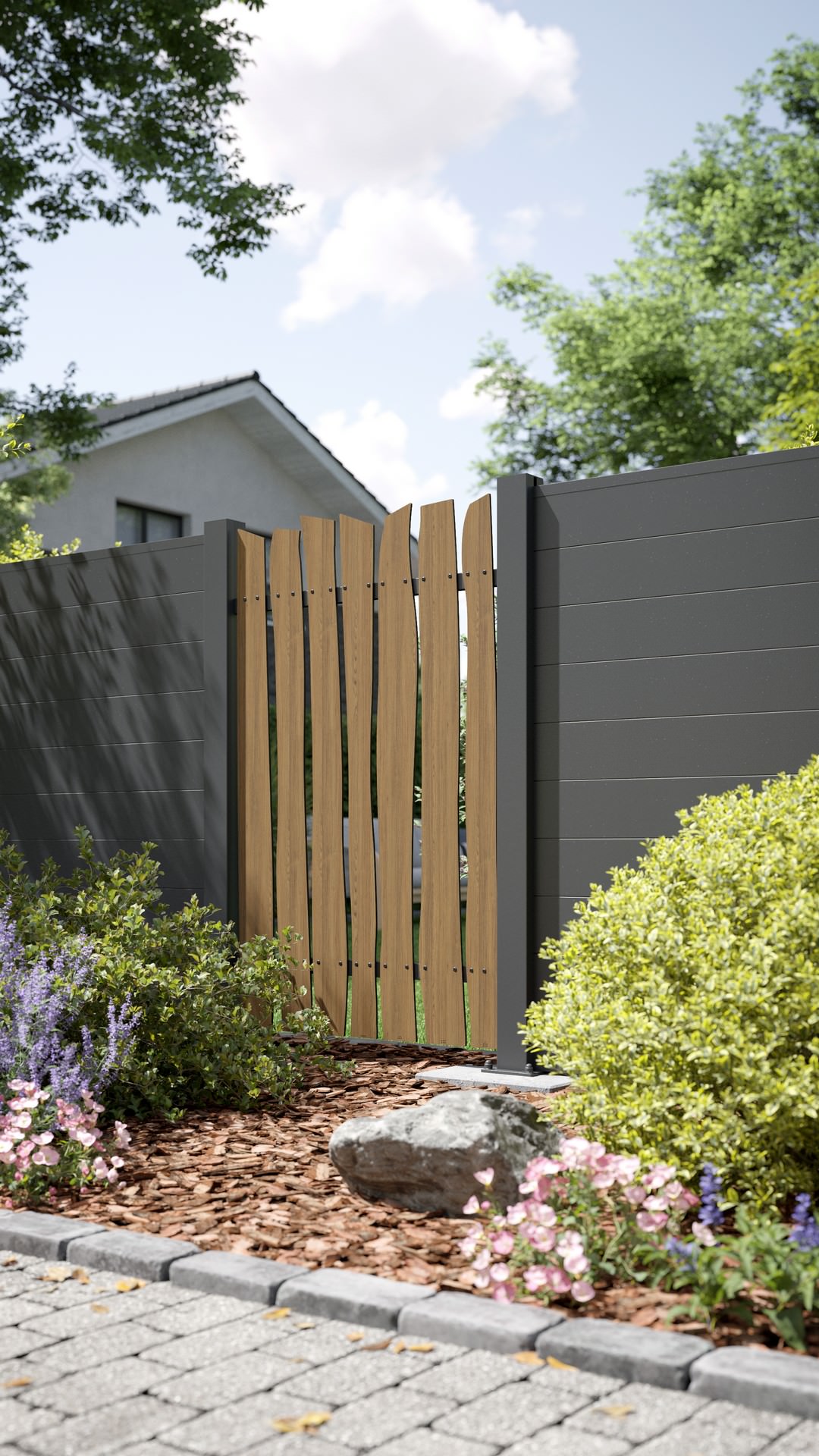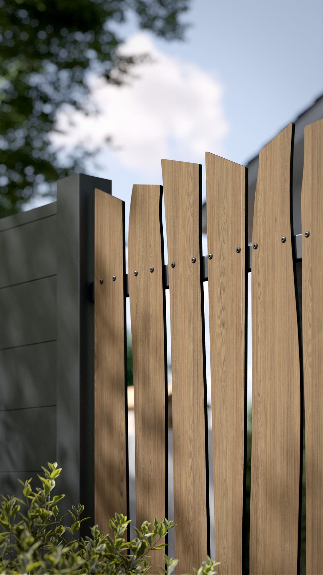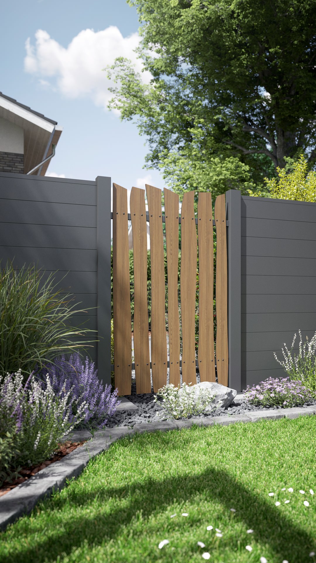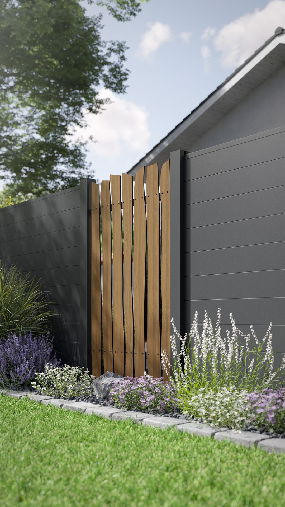 - vertikale Verbauung für einen Lattenzaun mit einem außerordentlichen Design